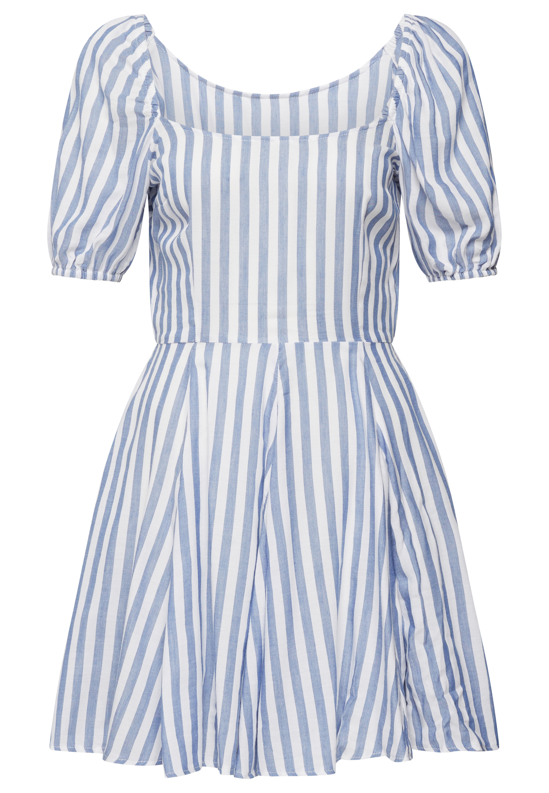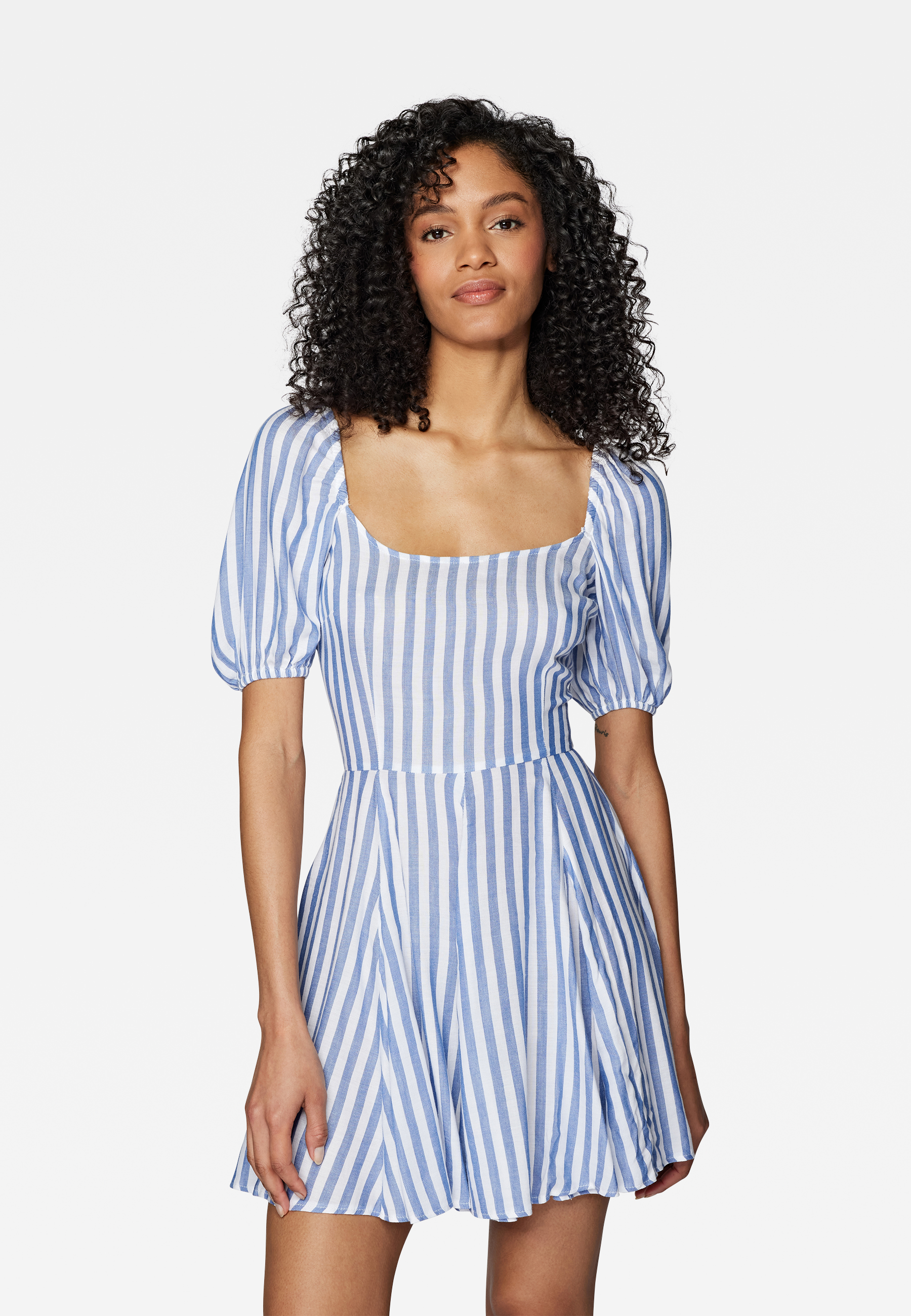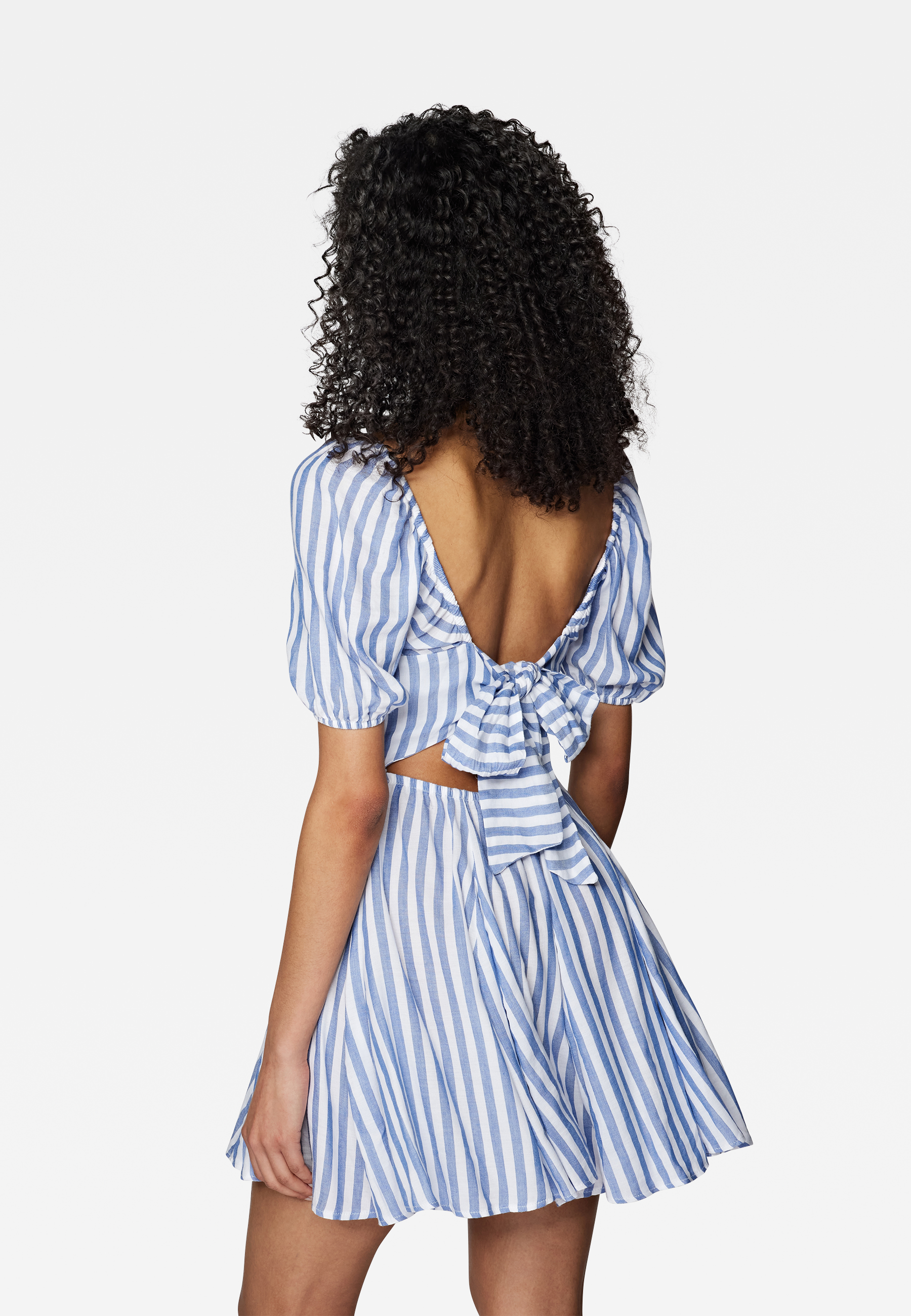 Kurz geschnittenes Kleid, kurzarm mit Volants, Rückenausschnitt mit Bindegürtel