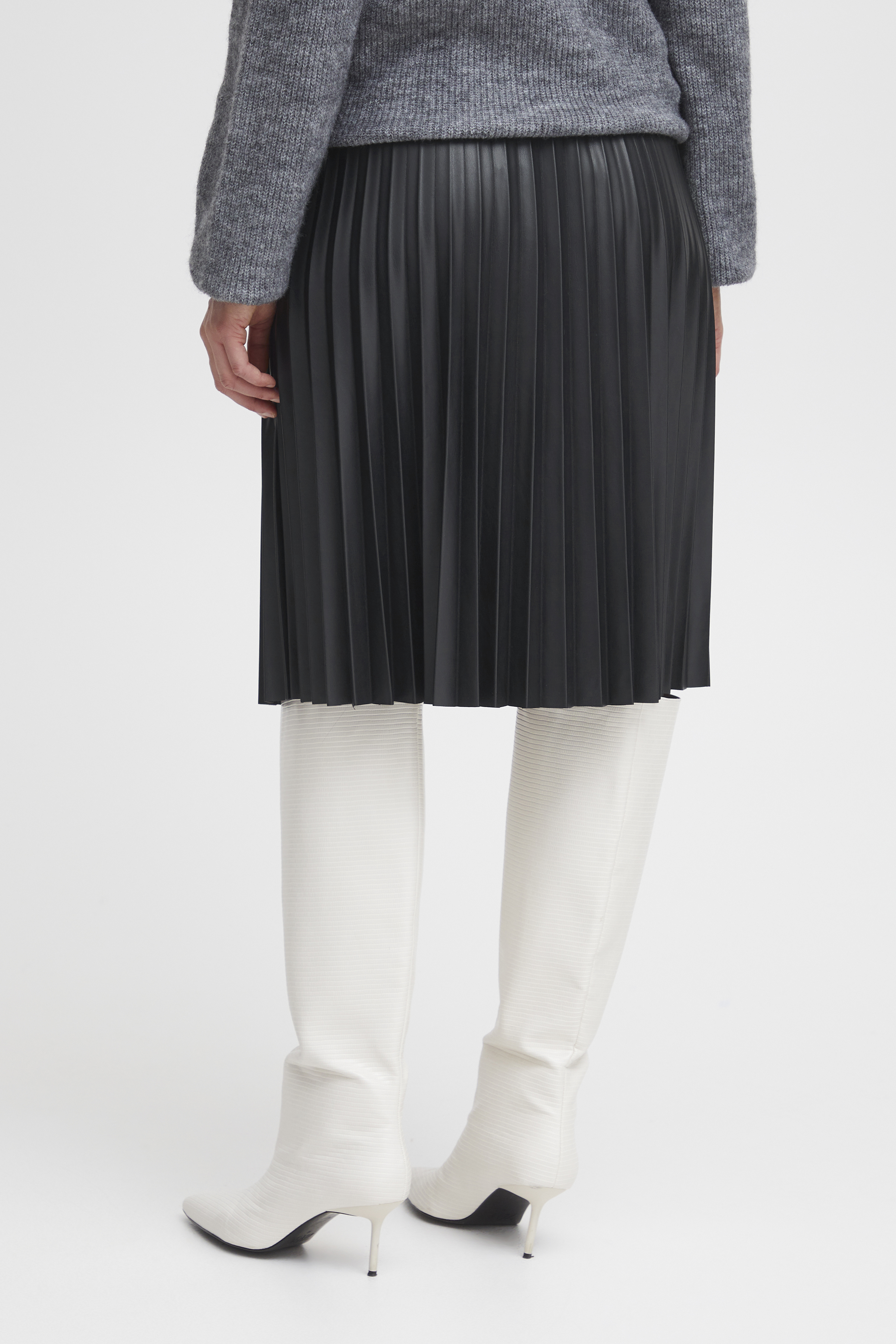 Faltenrock, regular fit, Bundhöhe regular waist, knielänge, schwarz
