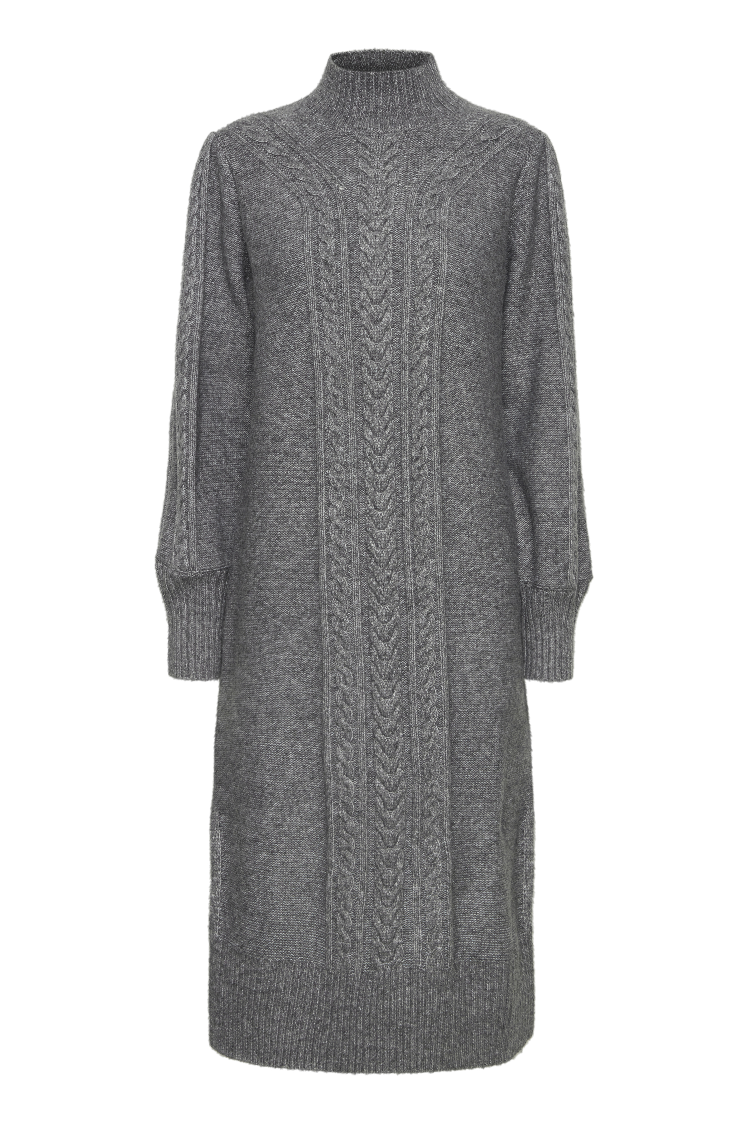 Gemütliches Midikleid mit Rundhalsausschnitt, Seitenschlitzen und Saumabschluß an Ärmeln und Rock. Passform regular fit , Farbe mid grey melange
