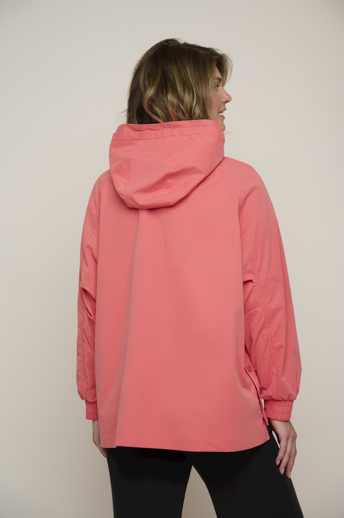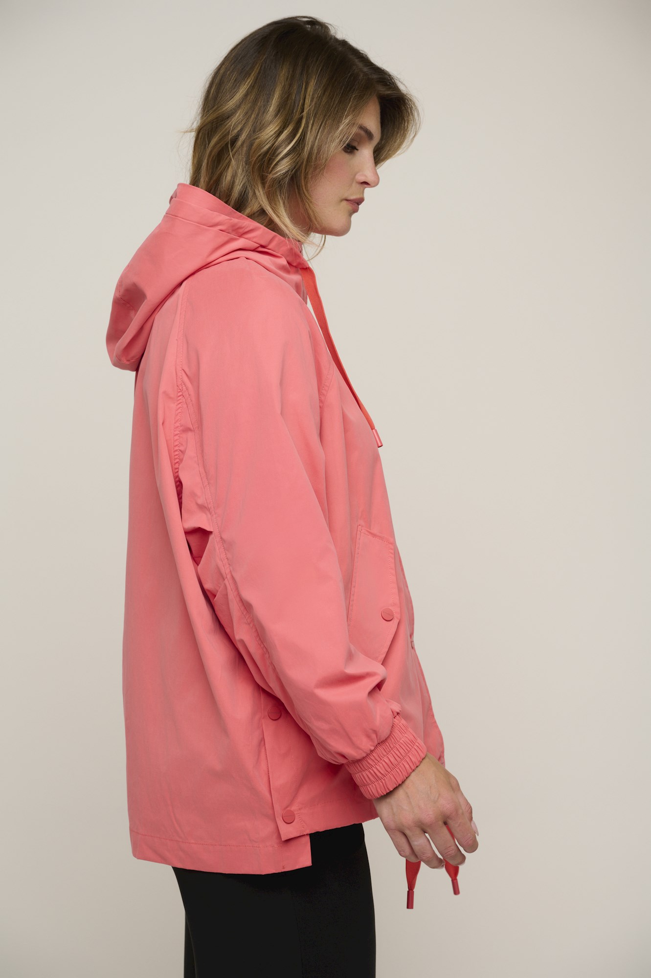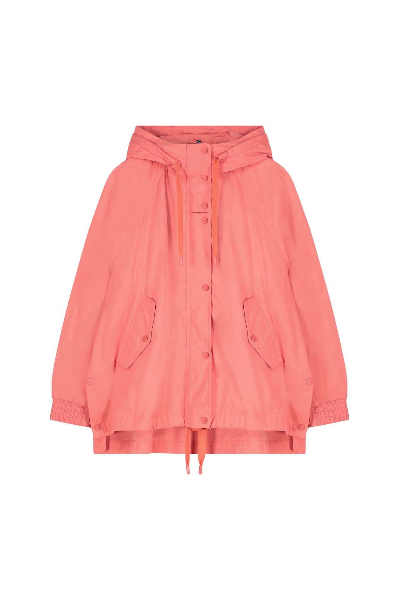 Kurzer Parka, Kapuze mit Kordelzug, verdeckter Reißverschluss mit Druckknopfverschluss, zwei Vordertaschen mit Druckknopfverschluss, elastische Ärmelbündchen und Schlitzdetails mit Druckknopfverschluss auf beiden Seiten, Innenliegende Riemen zur Formstraffung