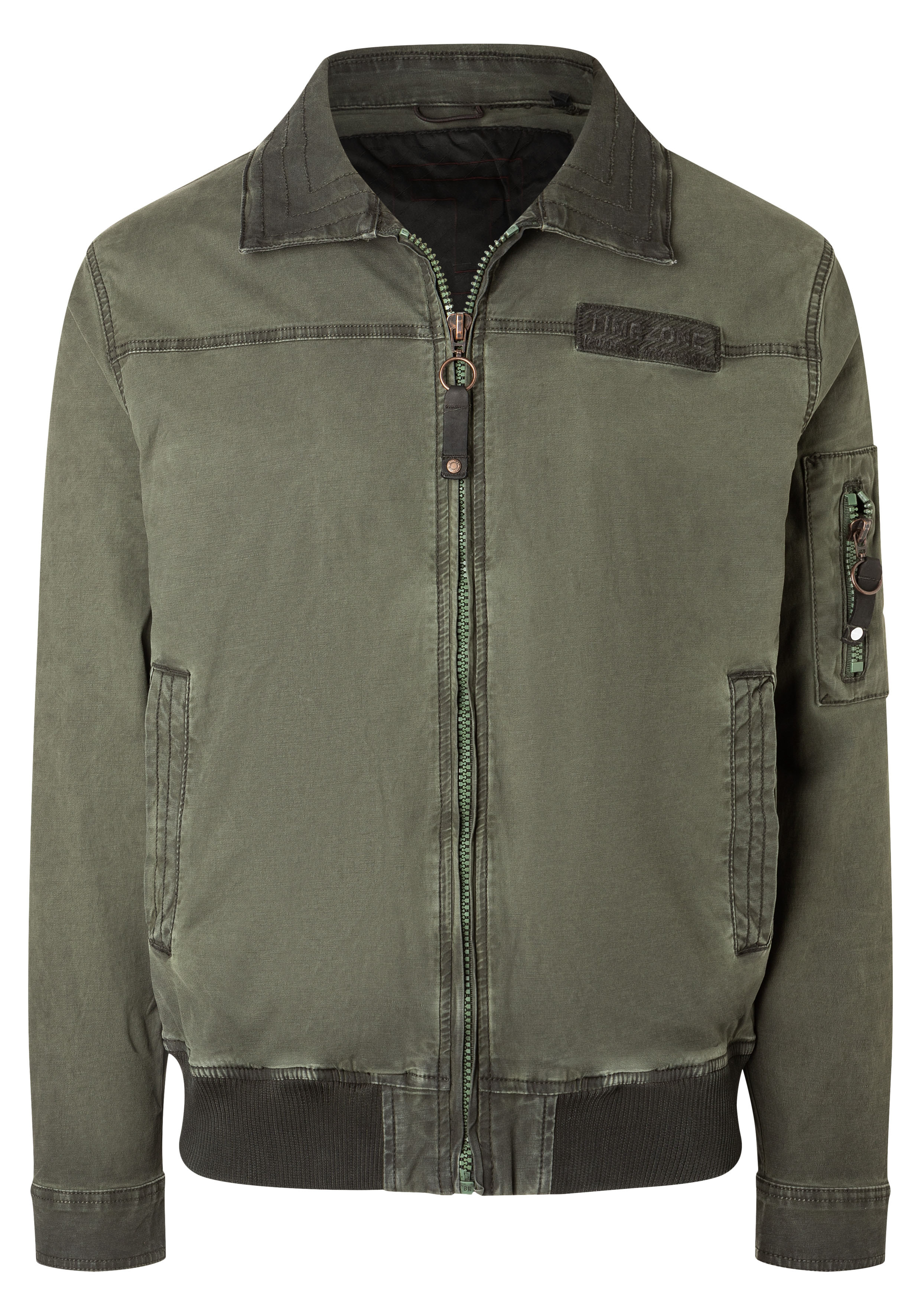 Bikerjacke mit Rippbündchen-Abschluss, Umlegekragen mit robusten Stepplinien, Ärmeltasche mit Reißverschluss und Lederanhänger,seitliche Eingrifftaschen, Innentaschen, kerniger Reissverschluss mit Lederanhänger, mit Lederdetails