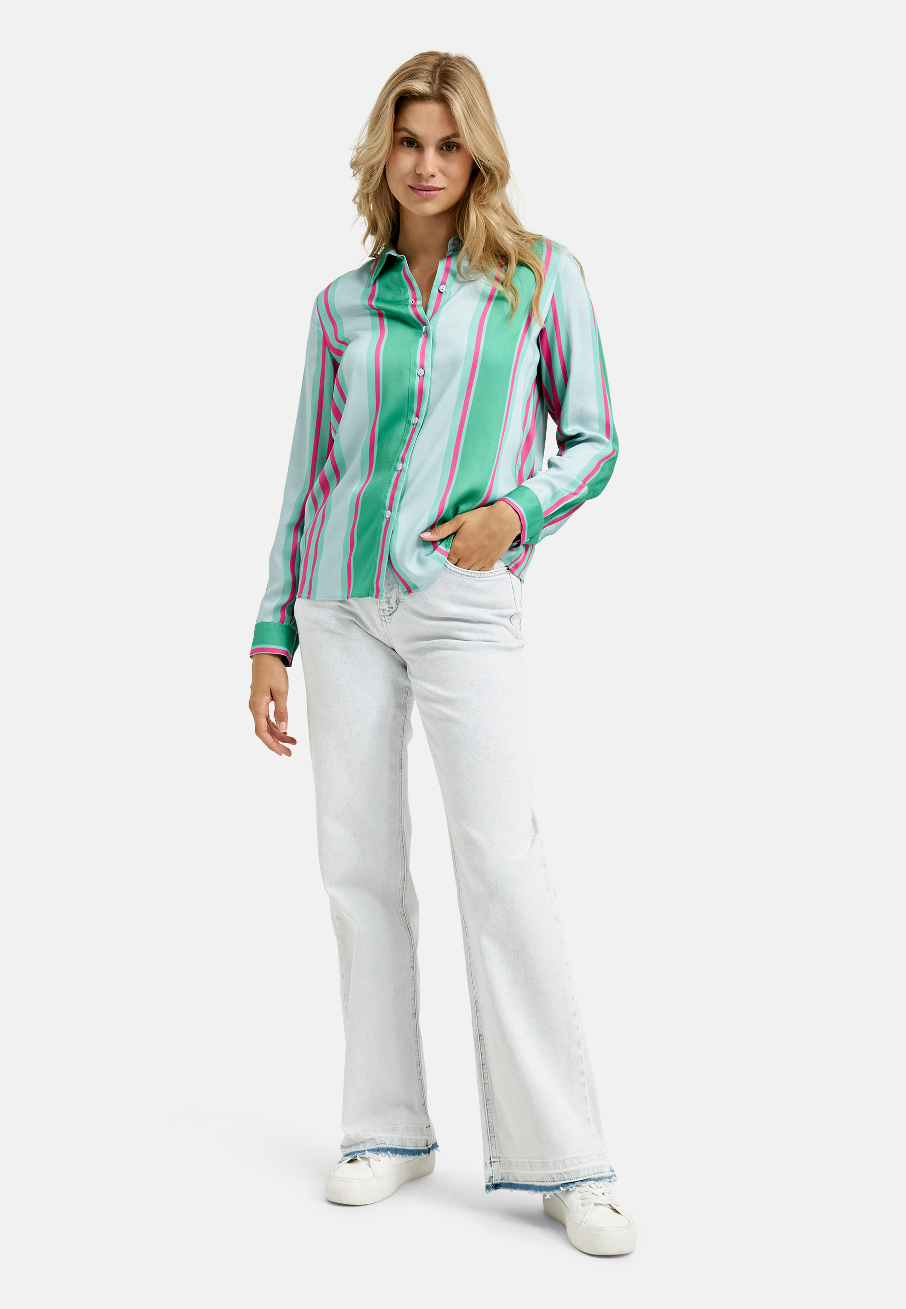 Bluse mit Hemdkragen, Langarm, Knopfleiste vorn, smaragdprint