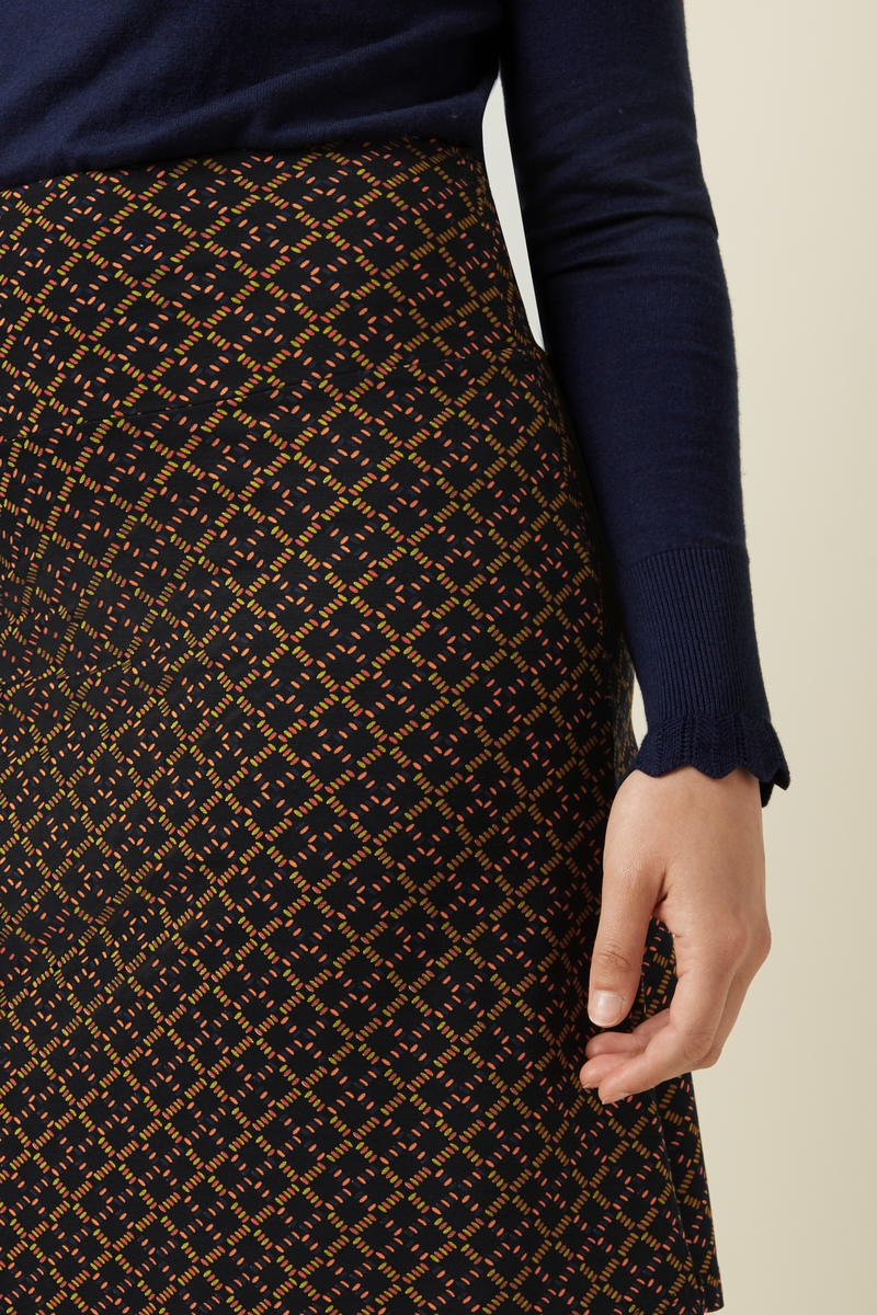 A-Linien-Rock mit breitemn elastischen Bund, Stretch, normale Bundhöhe, graphic Druck, Knie Länge