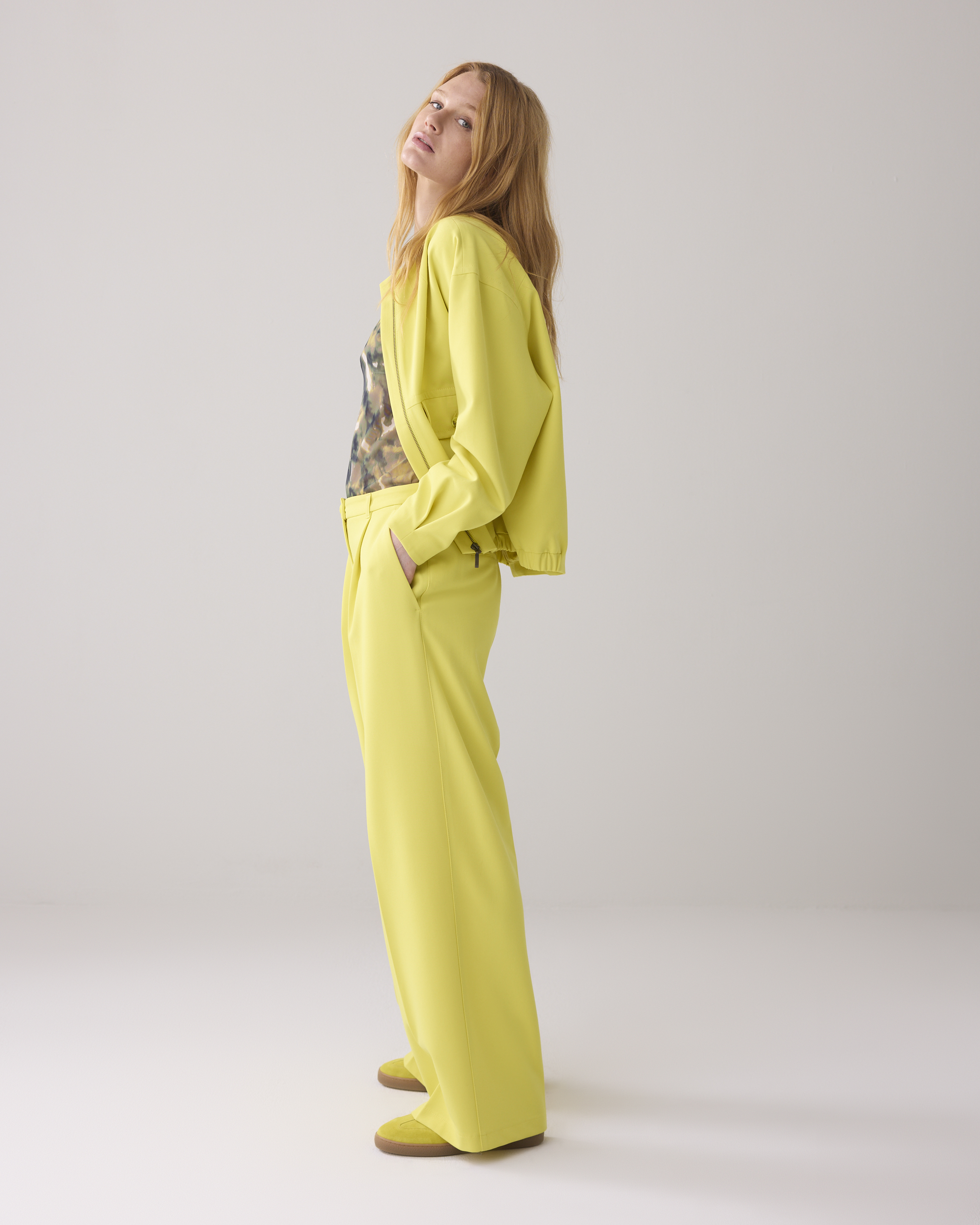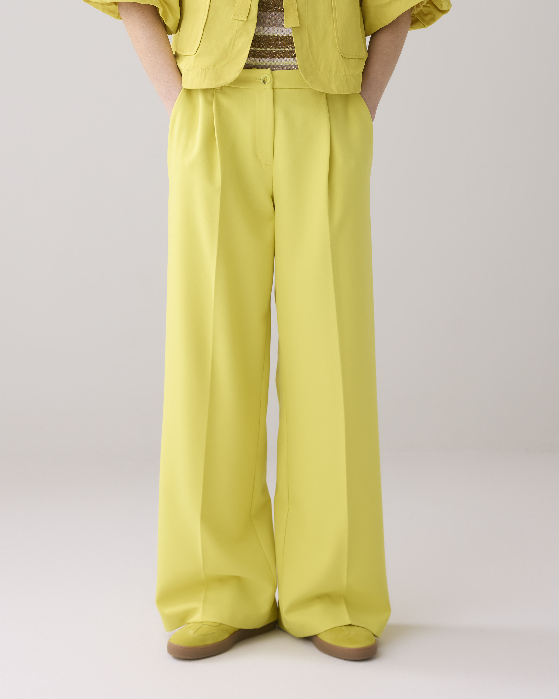 Diese Bundfaltenhose hat weite Beine und eine Bügelfalte auf der Vorderseite. Der Gummizug im Rücken sorgt für einen bequemen Sitz. Color mimosa yellow