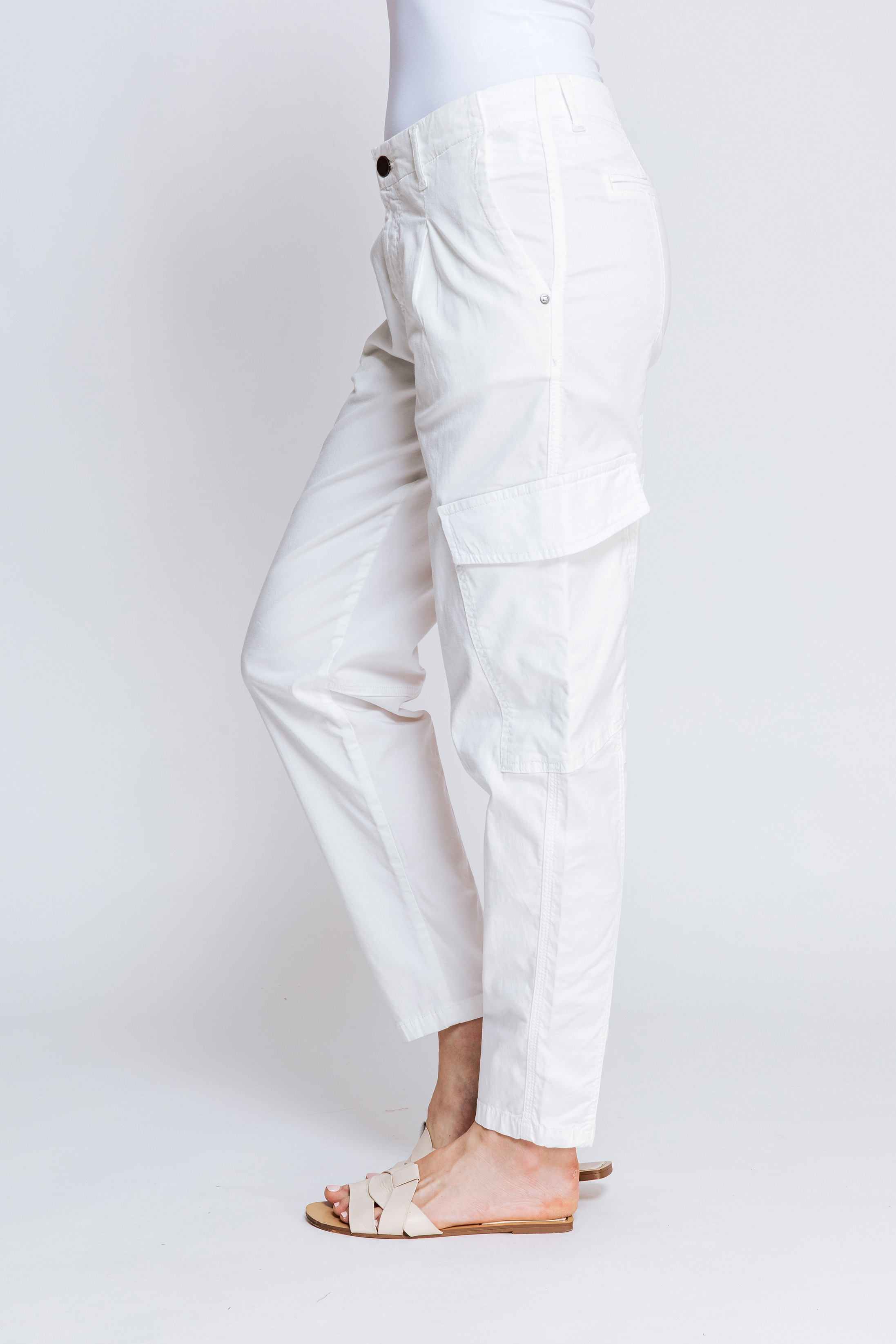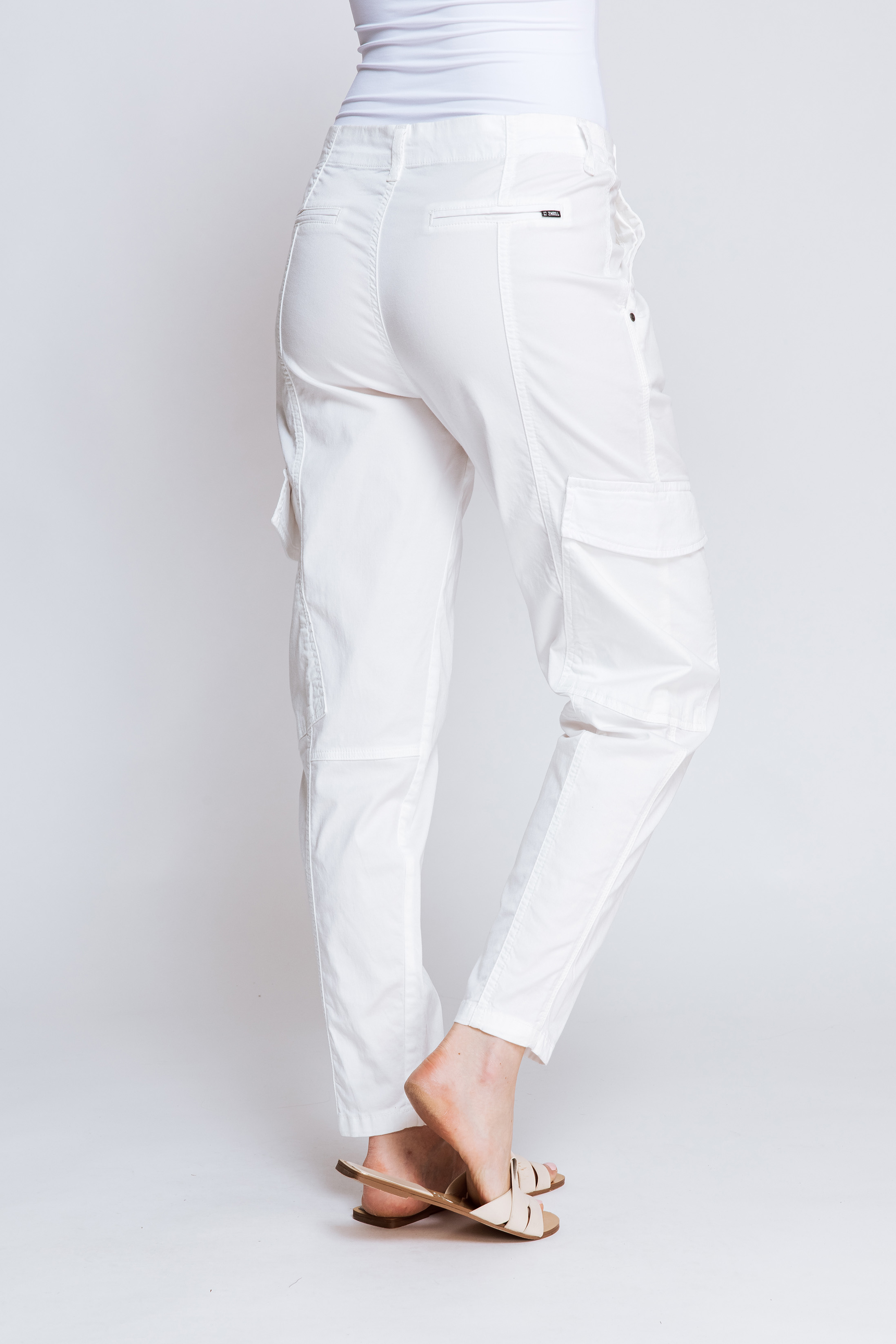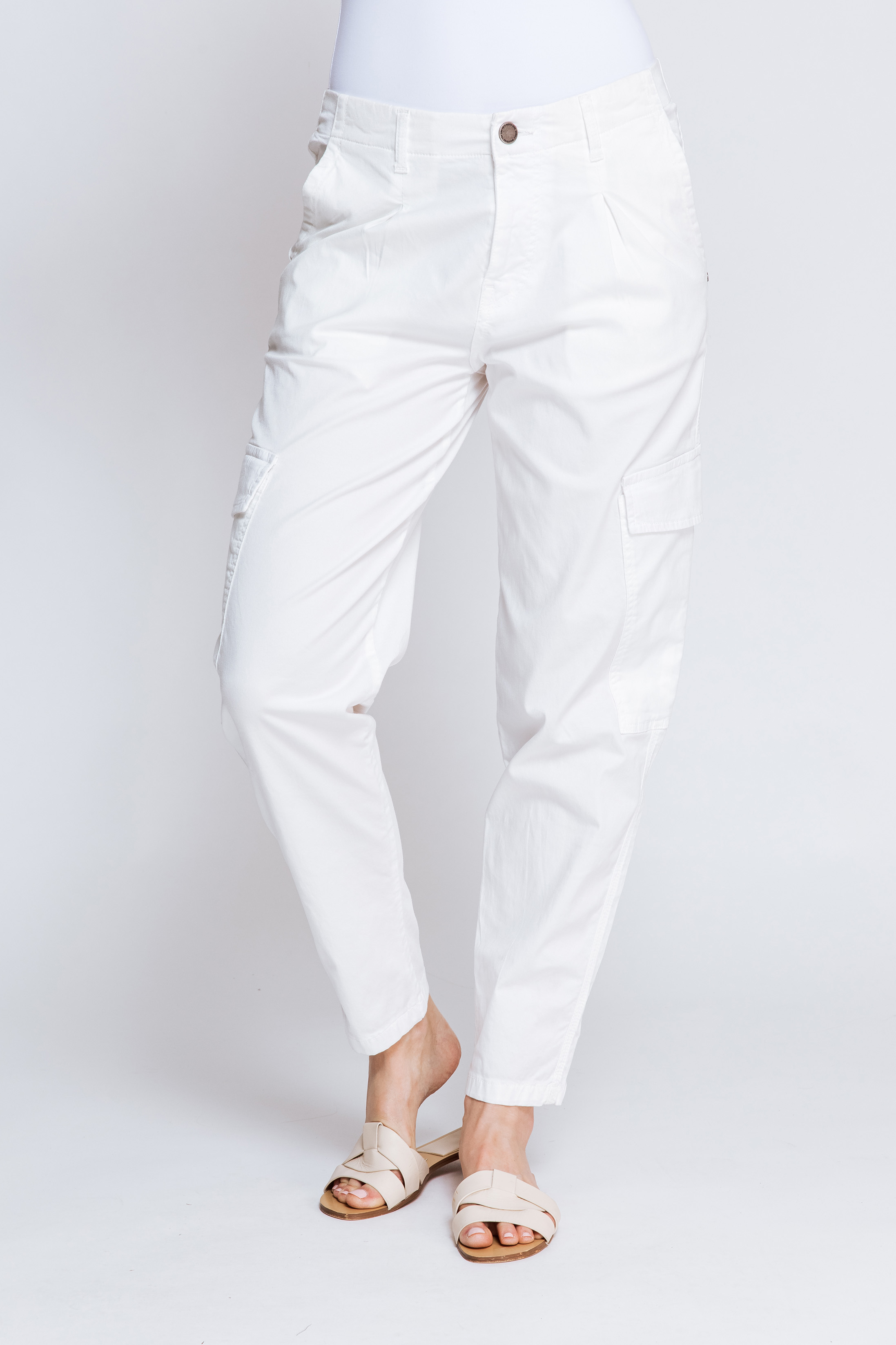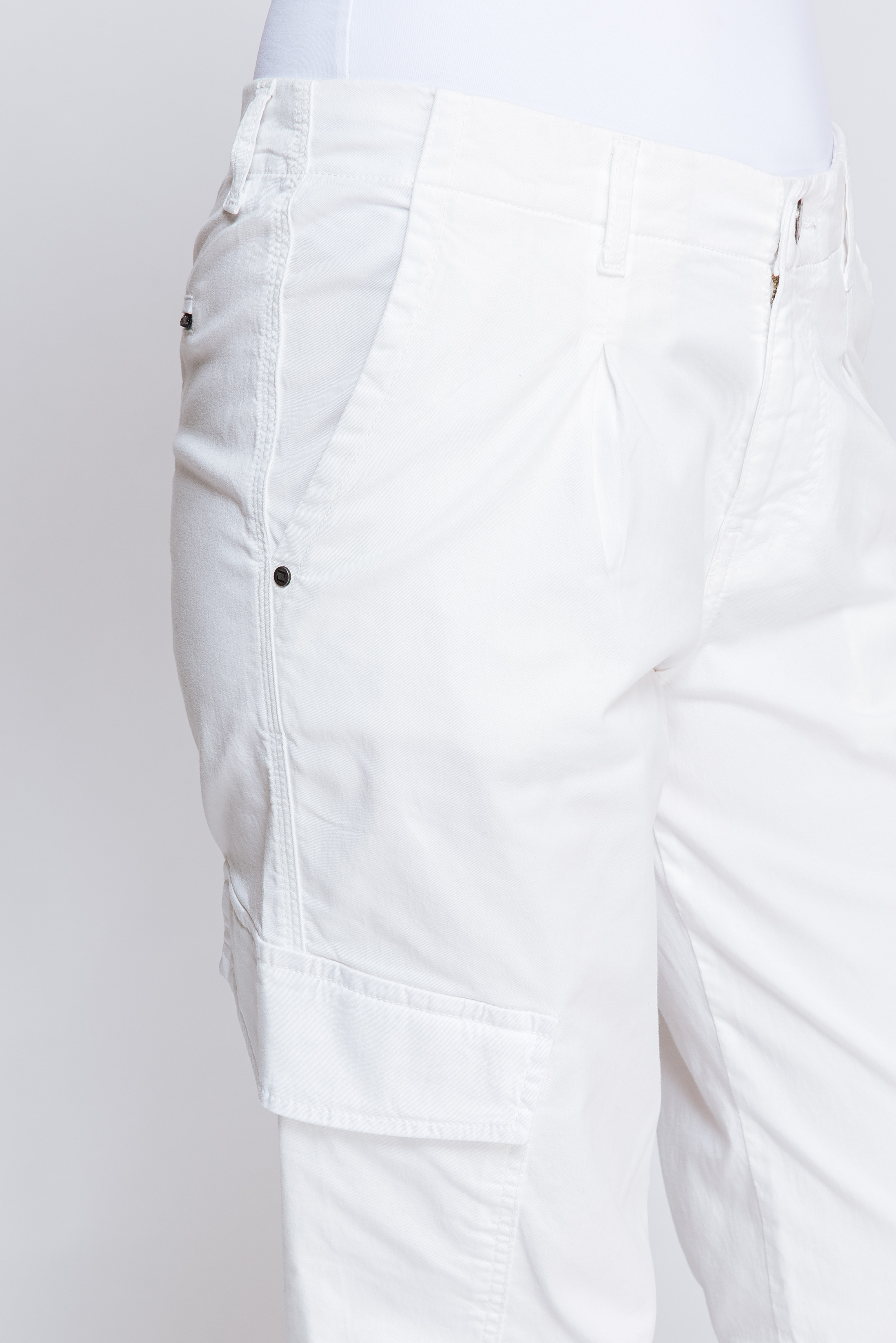 Stilvolle Stoffhose in strahlendem Weiß, Cargohose in Regular Fit , Knöchellang, Eingrifftaschen und Cargotaschen , Veschluss mit Knopf und Reißverschluss