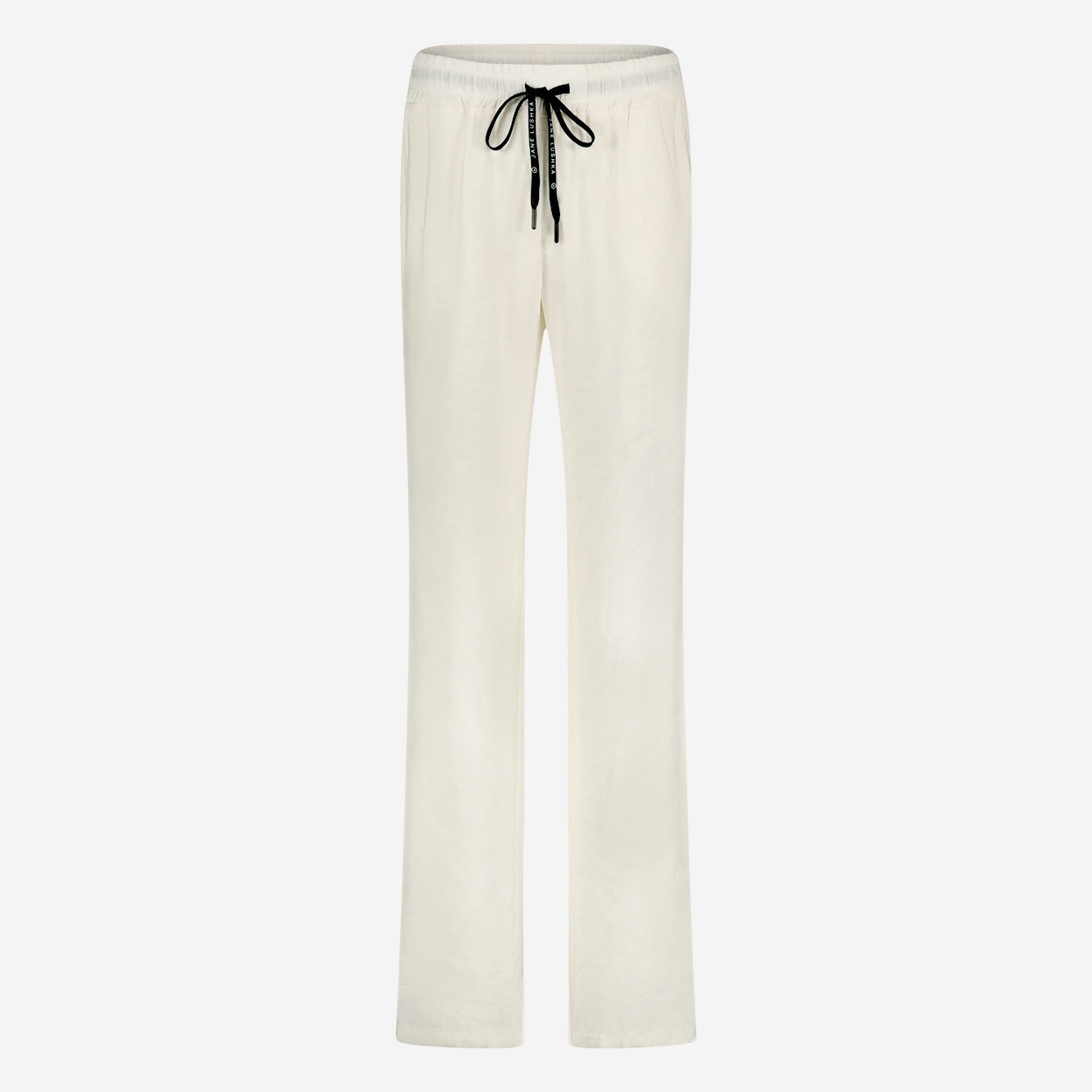 Hose mit mittlere Leibhöhe, breitem elastischen Bund mit Kordelzug, schräge Taschen vorne, gerades, weites Bein, entspannte Passform