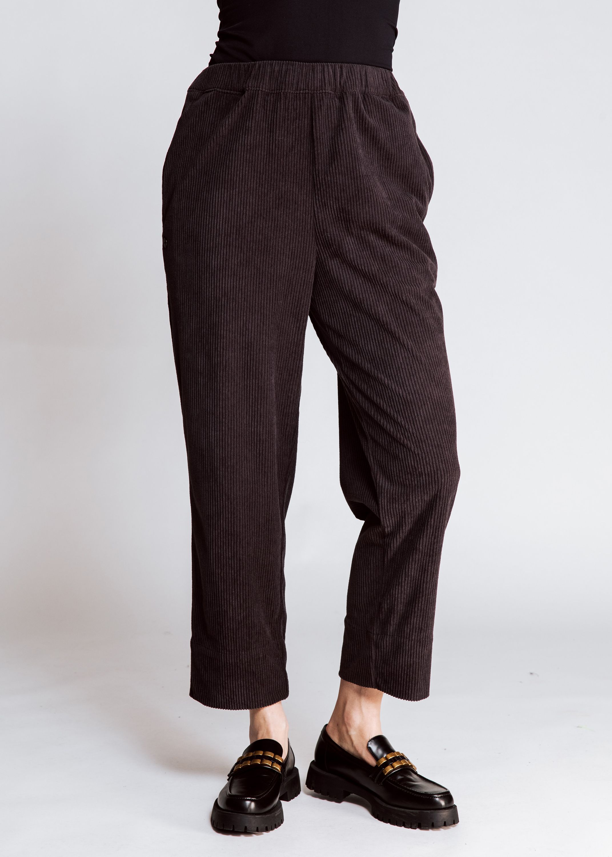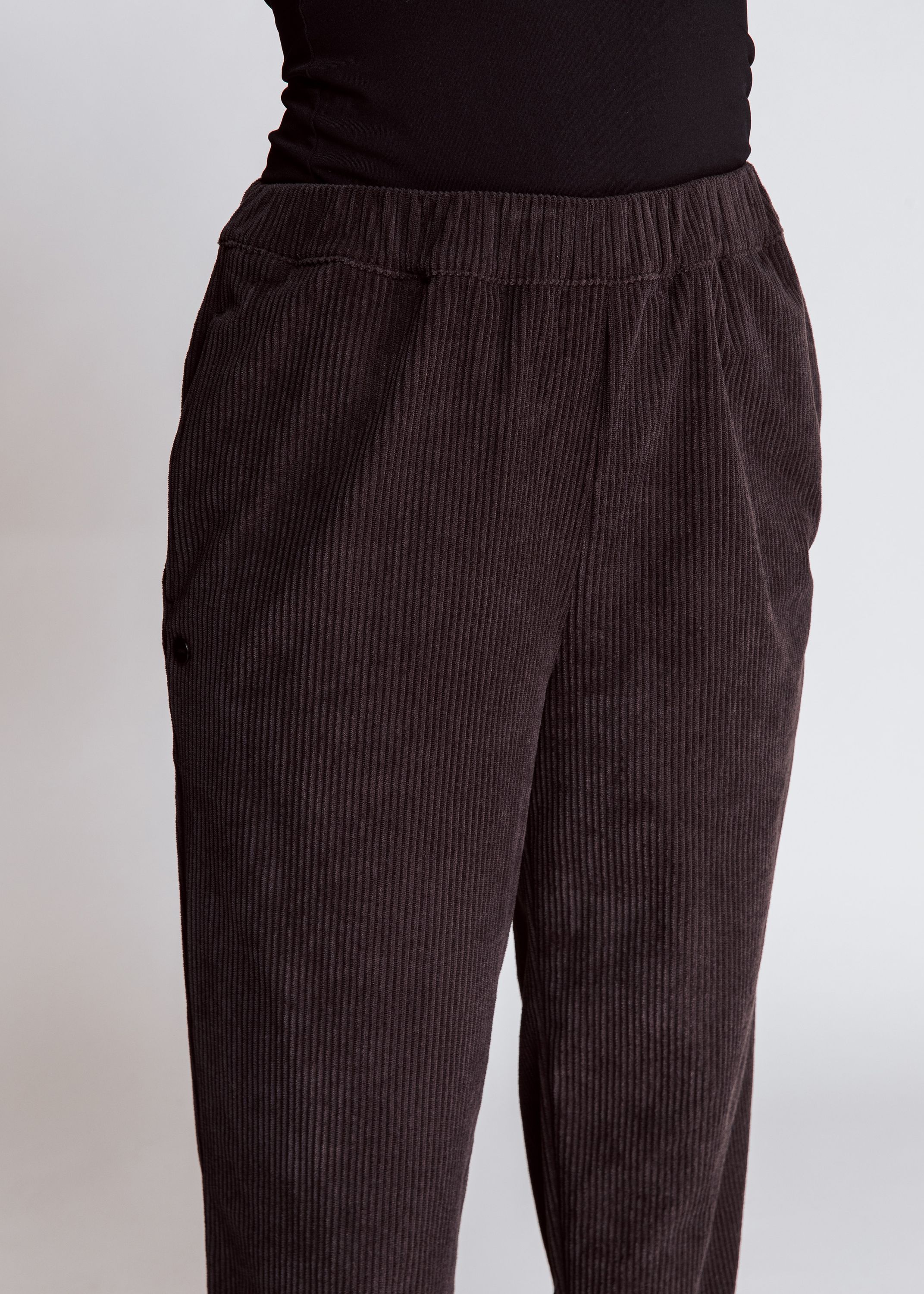 Cordhose in Schwarz , Eingrifftaschen, Gummizug , regular Fit - Straight Leg