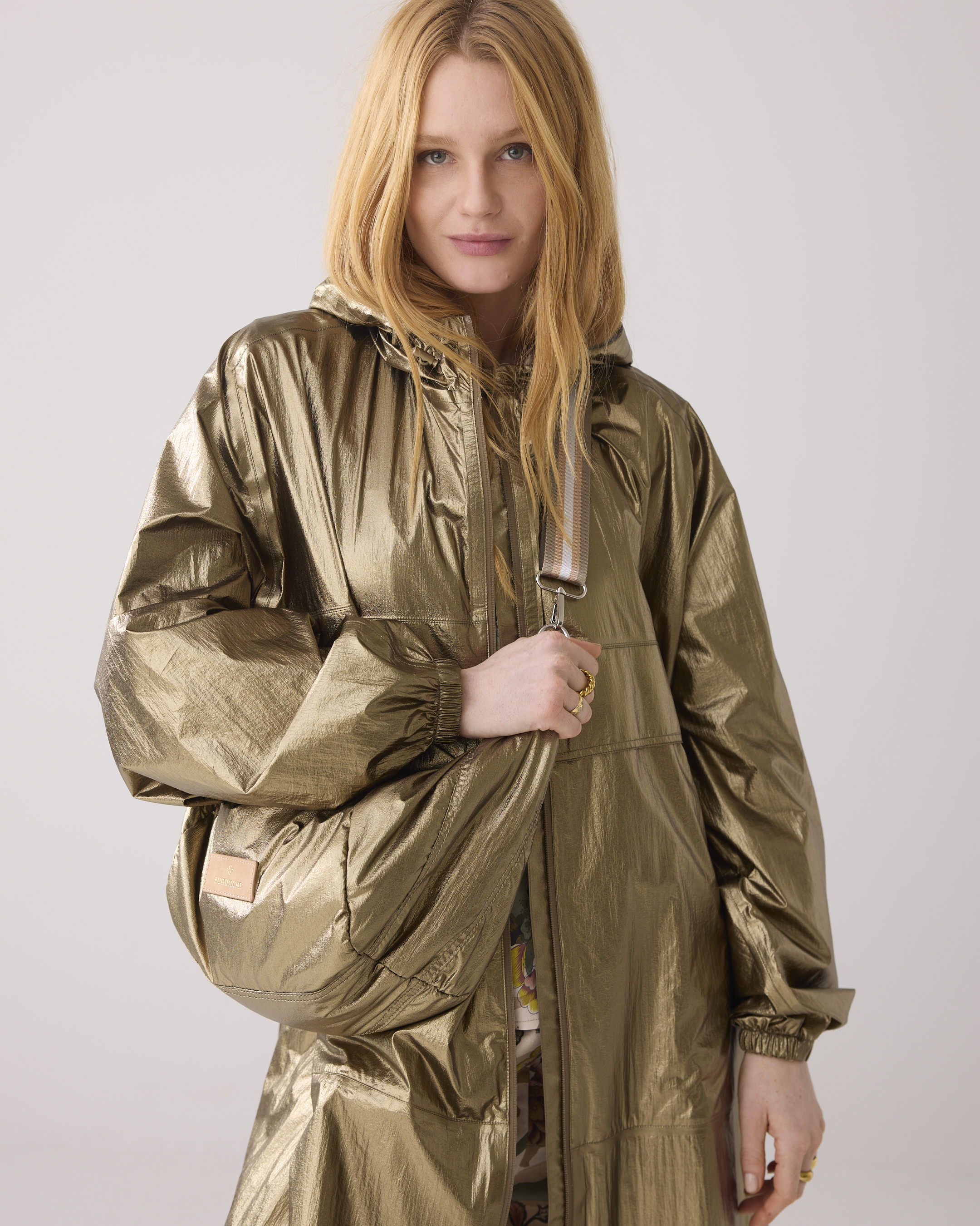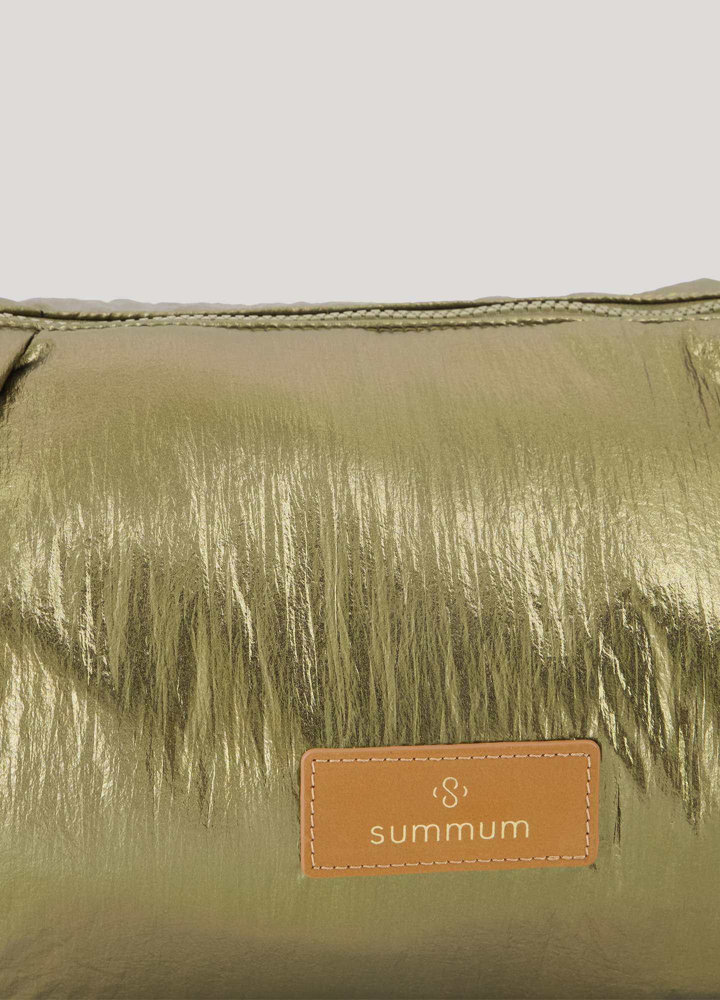 Diese Crossbody-Tasche ist aus metallisch glänzendem Stoff gefertigt und mit einem Reißverschluss versehen. Die Tasche ist gefüttert und hat eine Innentasche mit Reißverschluss für zusätzlichen Stauraum.