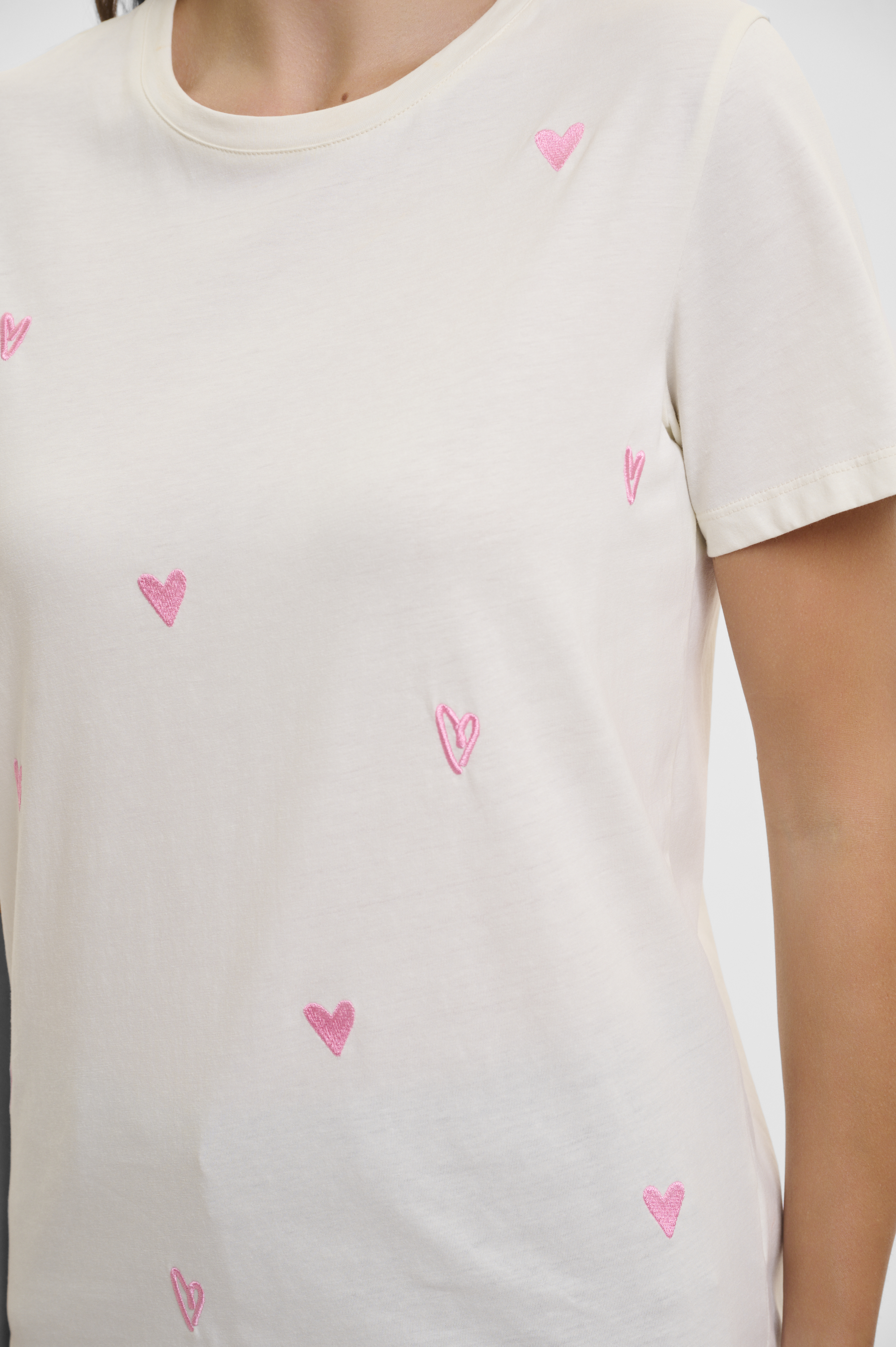 T-Shirt mit Rundhalsausschnitt, aufgestickte Herzen