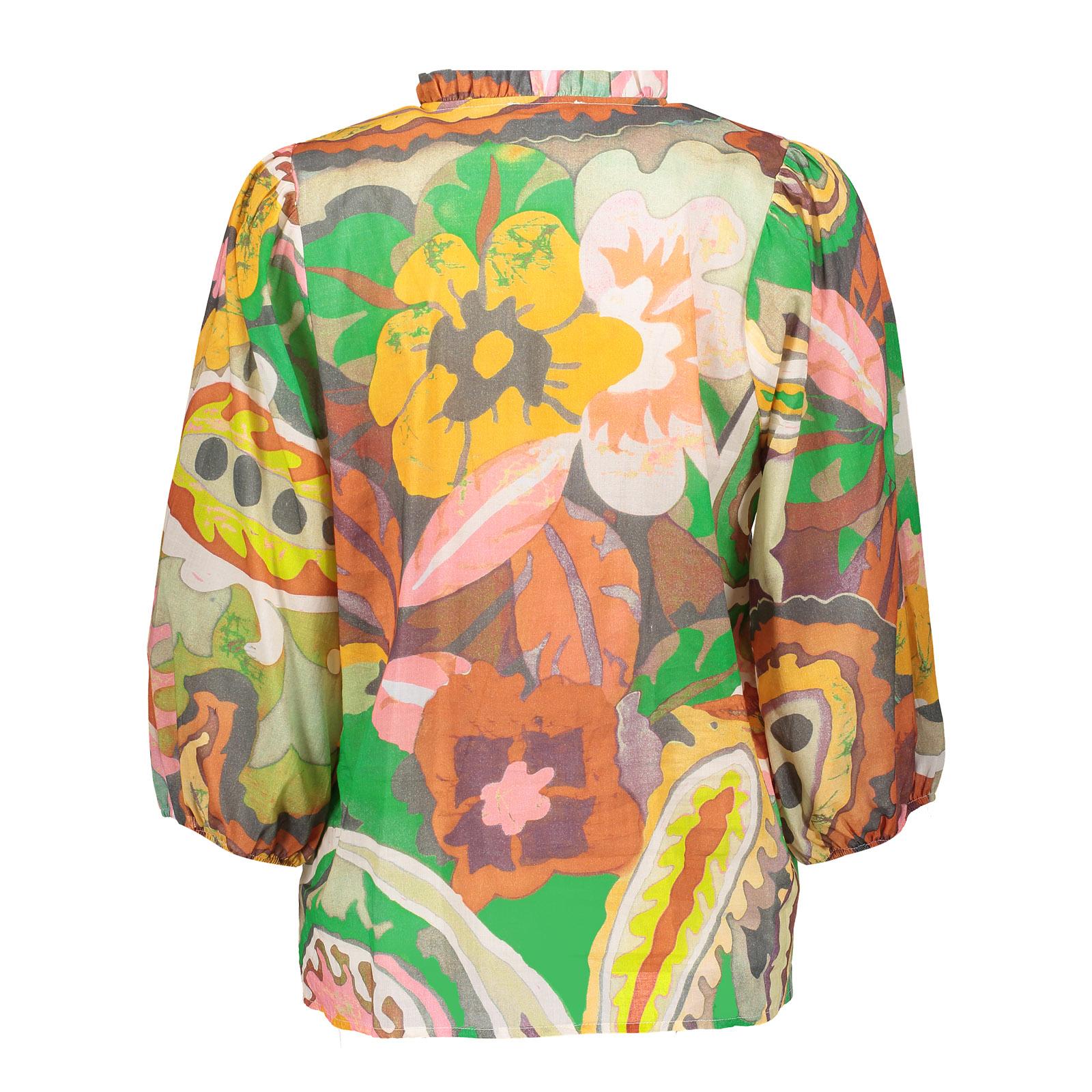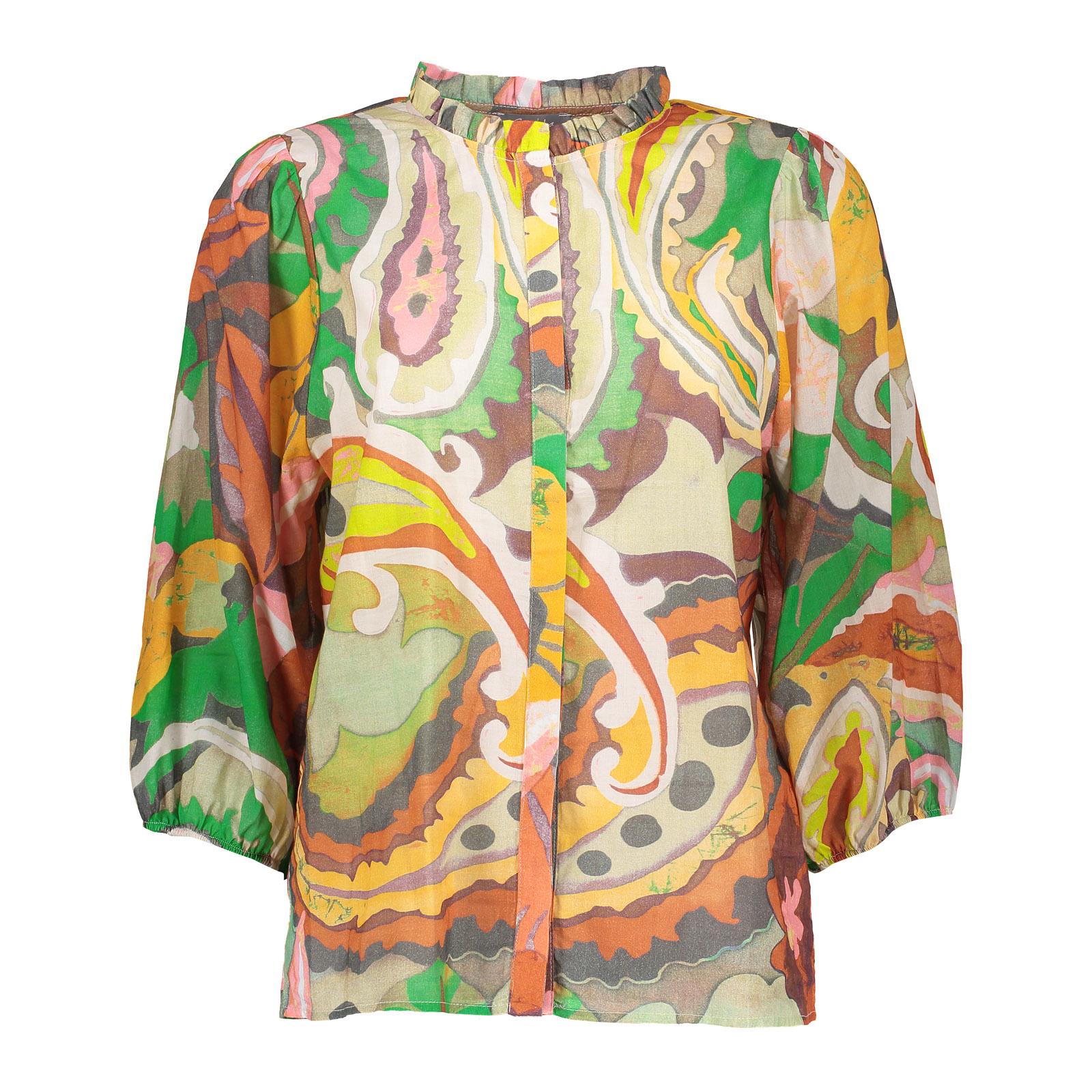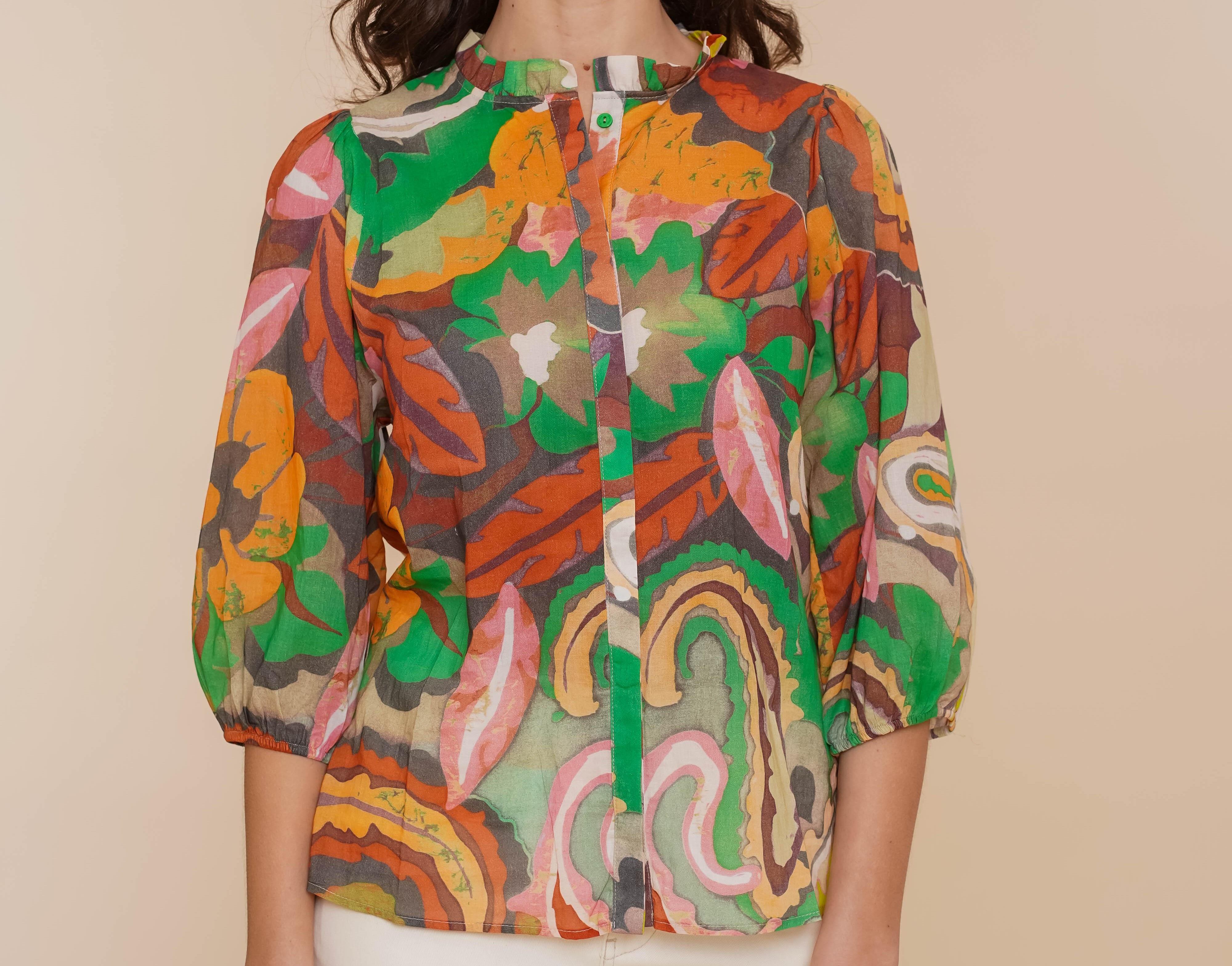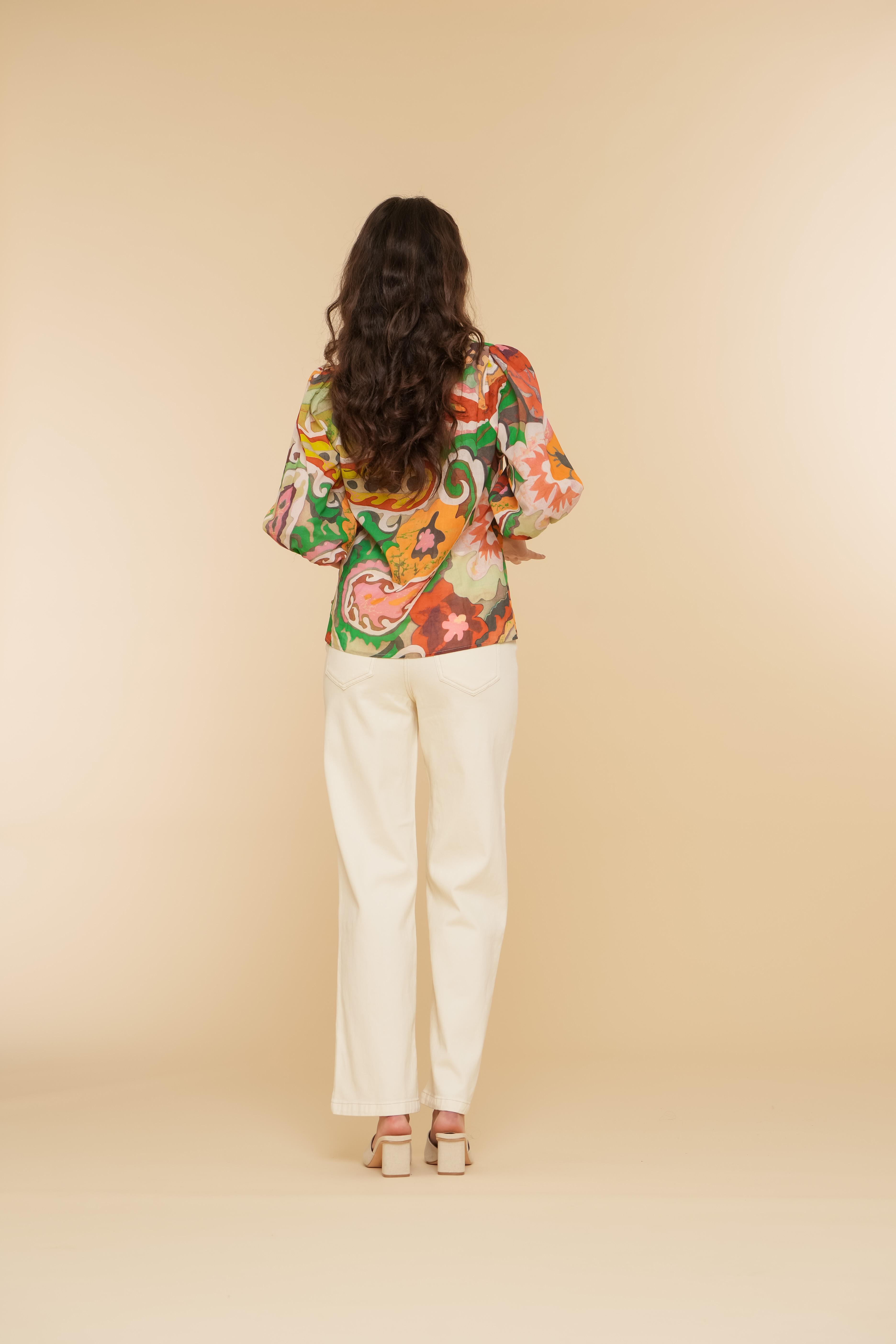 Leich durchscheinende Bluse mit geradem Kragen und 3/$ Puffärmel mit elastischem Bündchen, Knopfleiste, gerade Passform