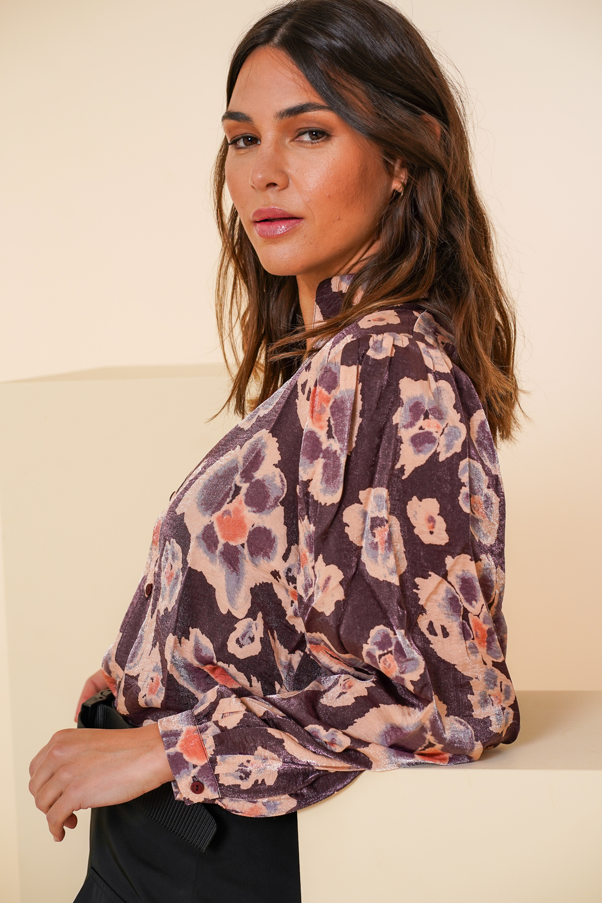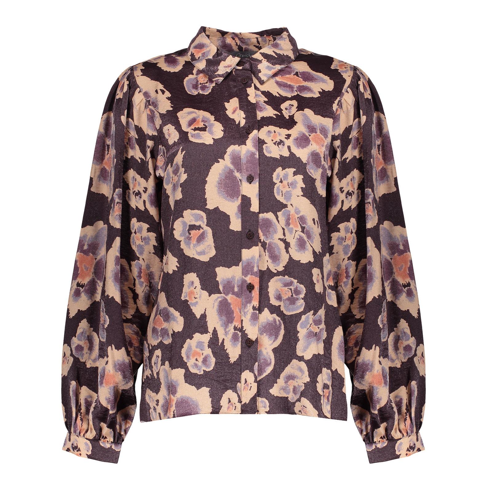 Bluse mit langem Arm , Knopfleiste , forales Muster Farbe purple/mauve,