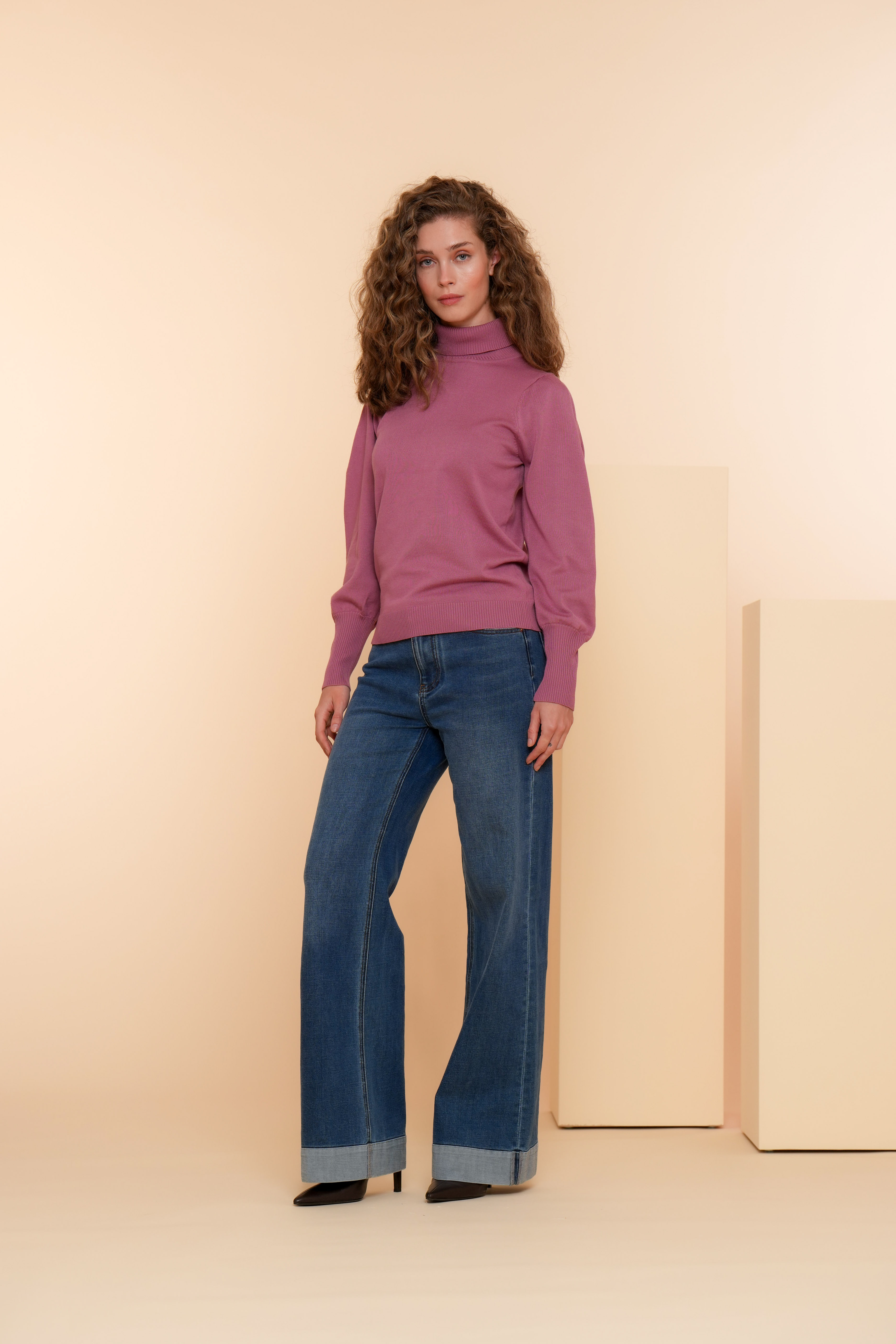 Pullover mit plissierten Schultern, lange Armel, lange Armelbündchen, hoher Kragen
