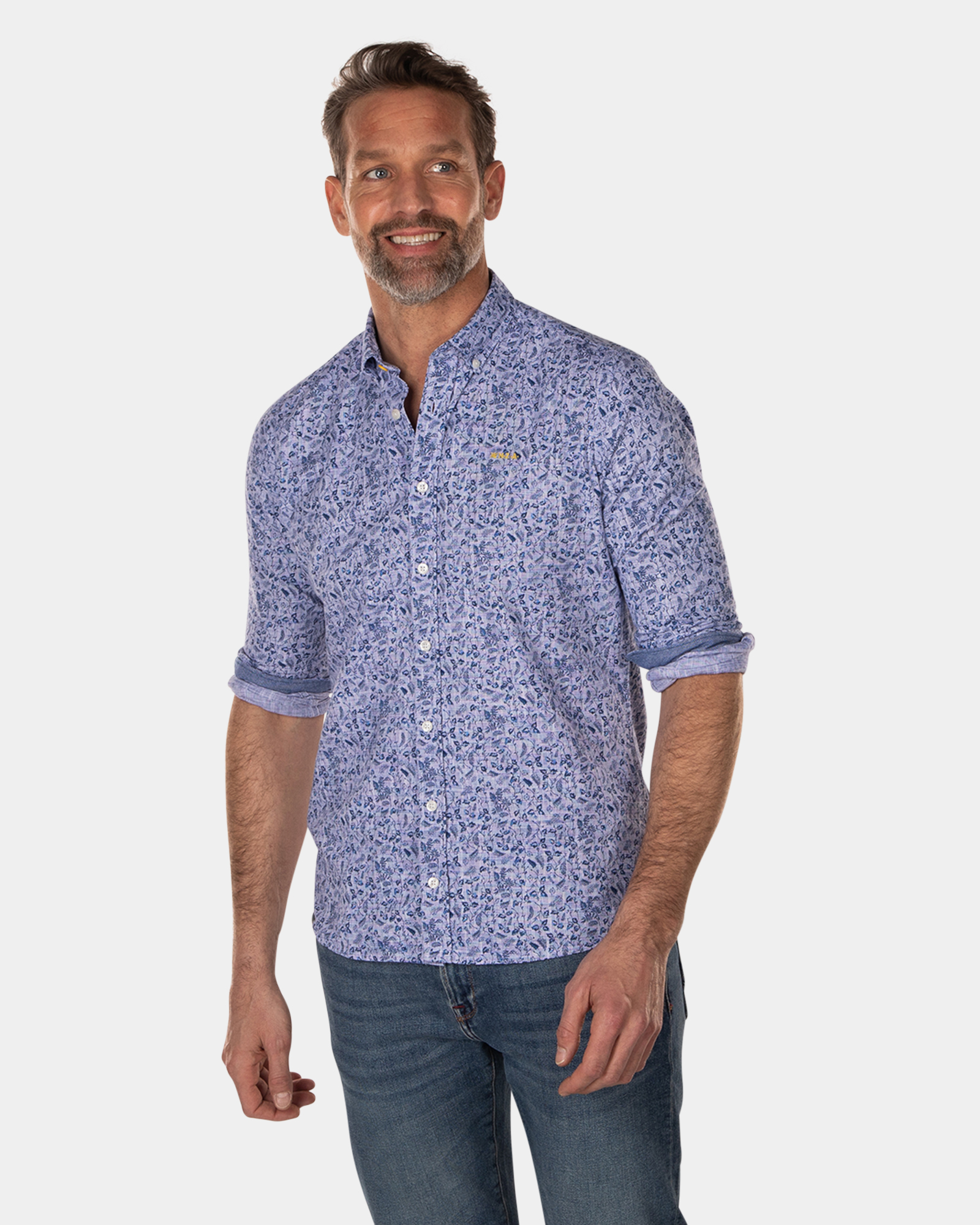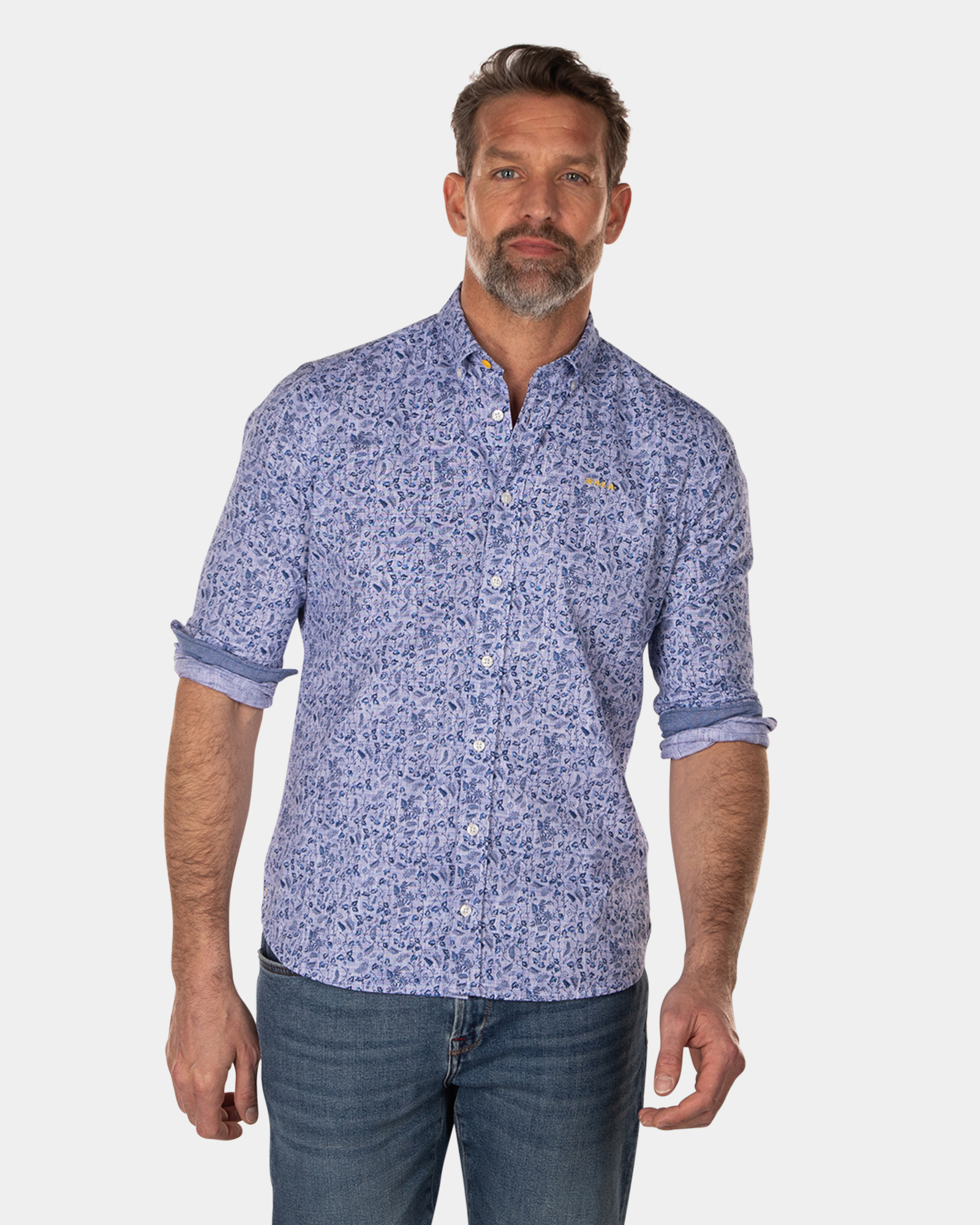 Blaues Baumwollhemd mit Blumendruck - light blue