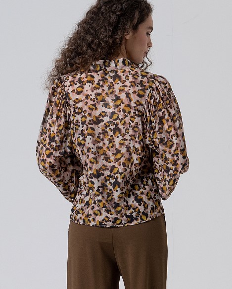 Hemdbluse mit gerafften Ärmeln, Knopfleiste, Hemdkragen, graphischer Leodruck