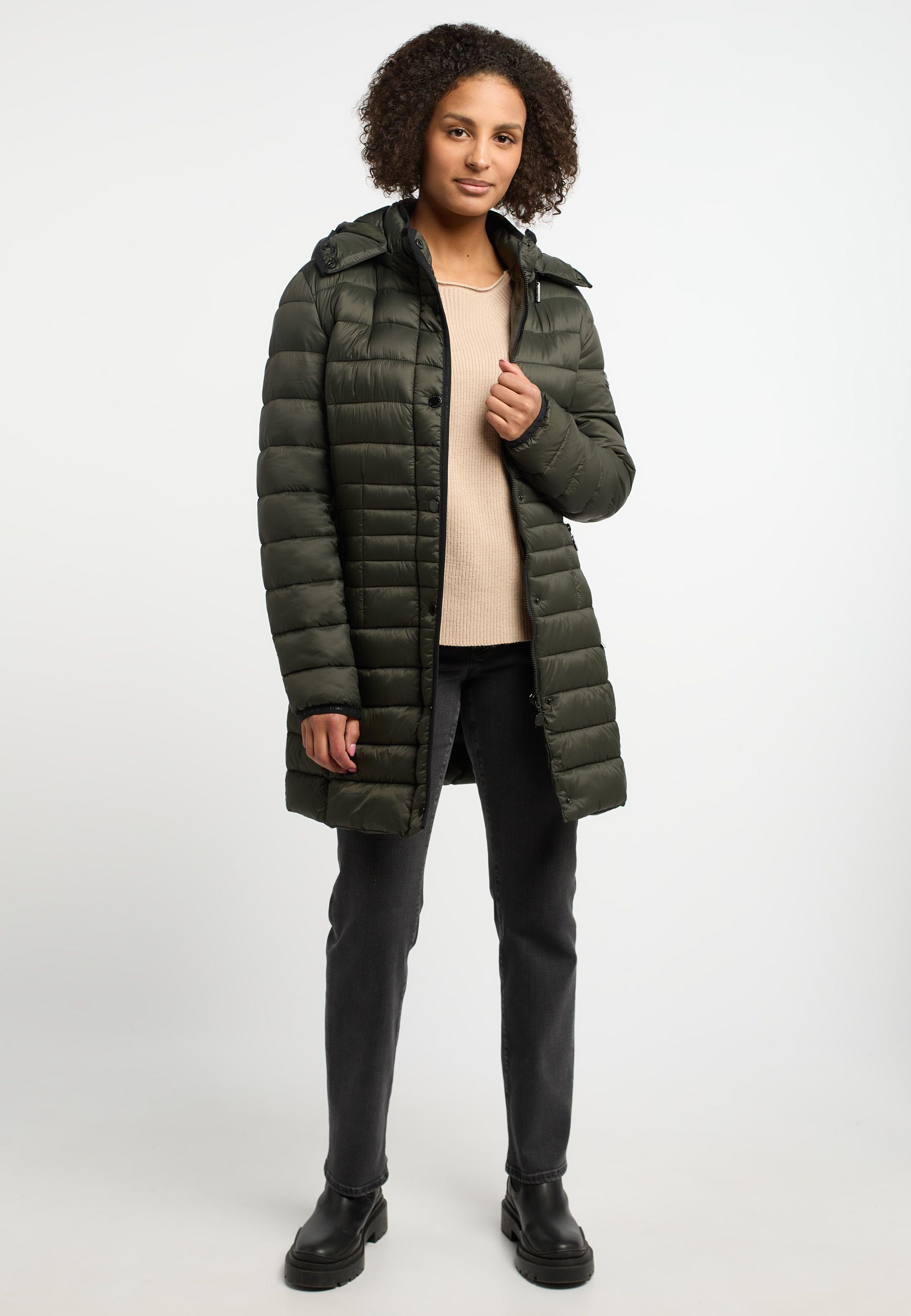 Insgeheim sind solche unkomplizierten und klassischen Steppjacken, wie diese hier von FRIEDA&FREDDIEs ja unser aller Lieblingsstücke. Diese hier trumpft mit praktischen Details, wie einer abnehmbaren Kapuze und verdeckter Druckknopfleiste inklusive Two-Way-Zipper auf. Dazu Stiefeletten oder Chelsea-Boots - und wir sind bereit zum Ausgehen.