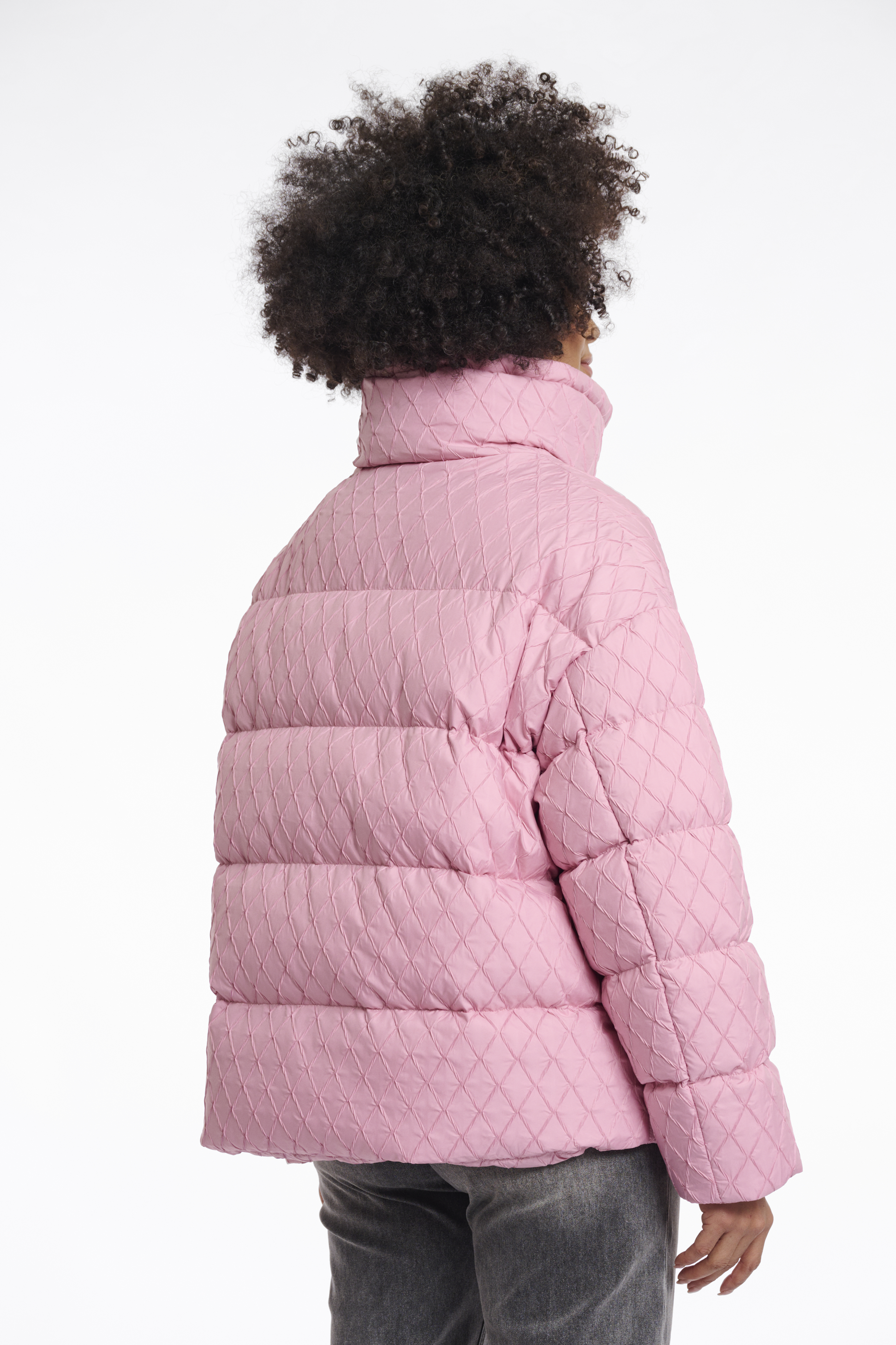 Kurze, wattierte Jacke, hoher Halskragen mit Reißverschluss , seitliche Schlitztaschen mit Reißverschluss, Strukturmaterial, Farbe mauve pink