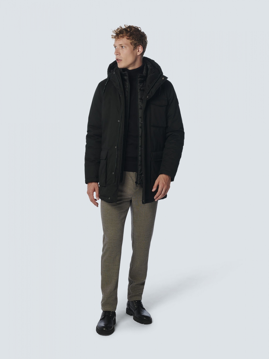 Jacke mit langer Passform, Kapuze und doppeltem Frontverschluss