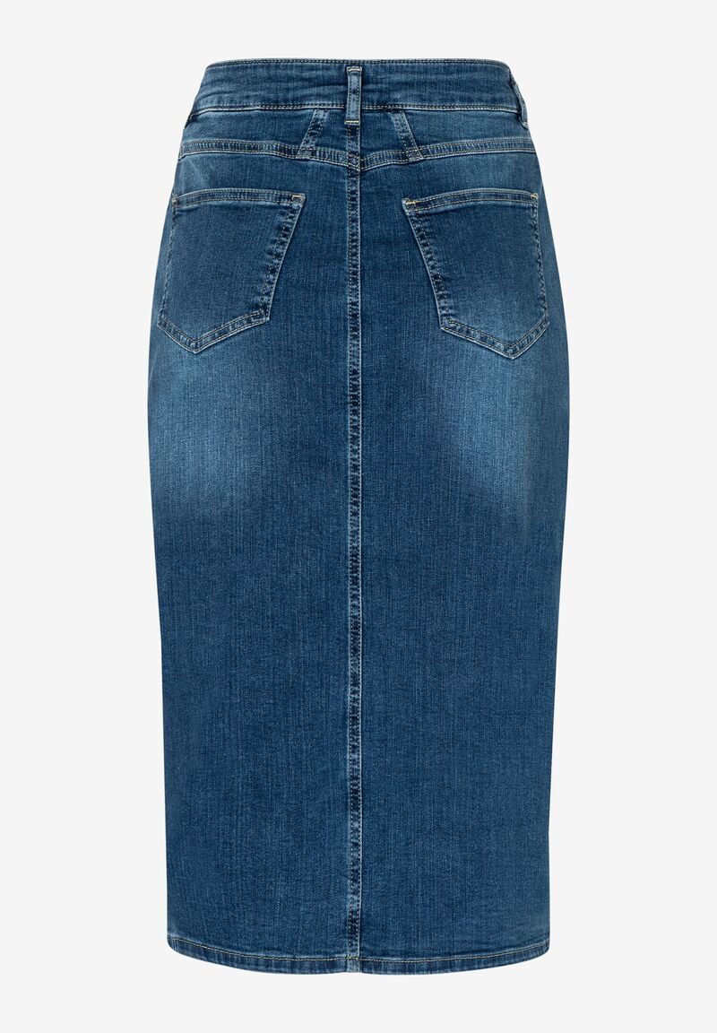 Den midi-langen Jeansrock von MORE & MORE können Sie sowohl mit lässigem Grobstrickpullover als auch mit eleganter Satinbluse stylen.