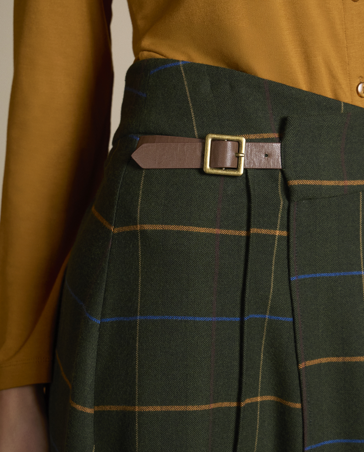 Produktinformationen "Karierter Crossover-Midirock Khaki"