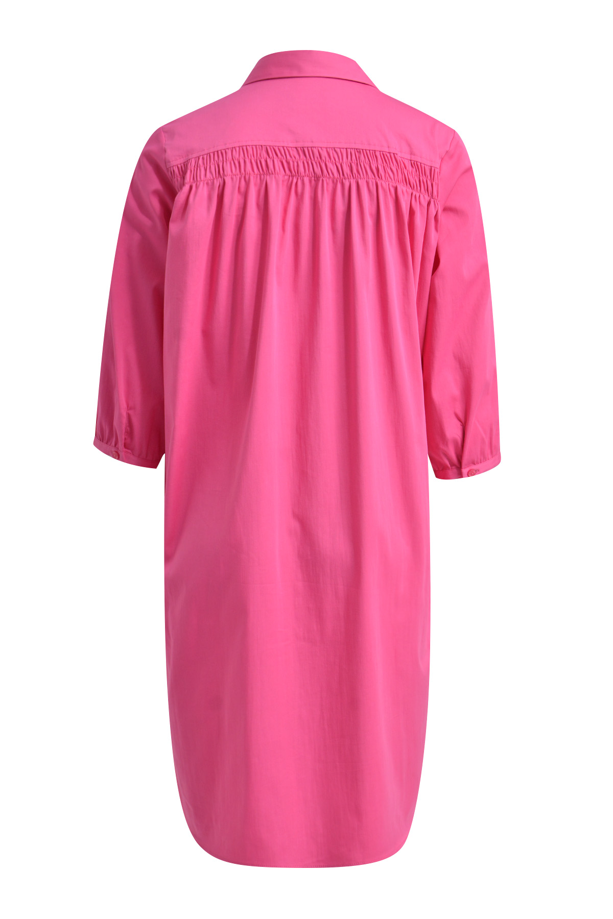 Kleid mit Kragen und Knopfleiste vorn, 3/4 Arm, Rücken mit Raffung