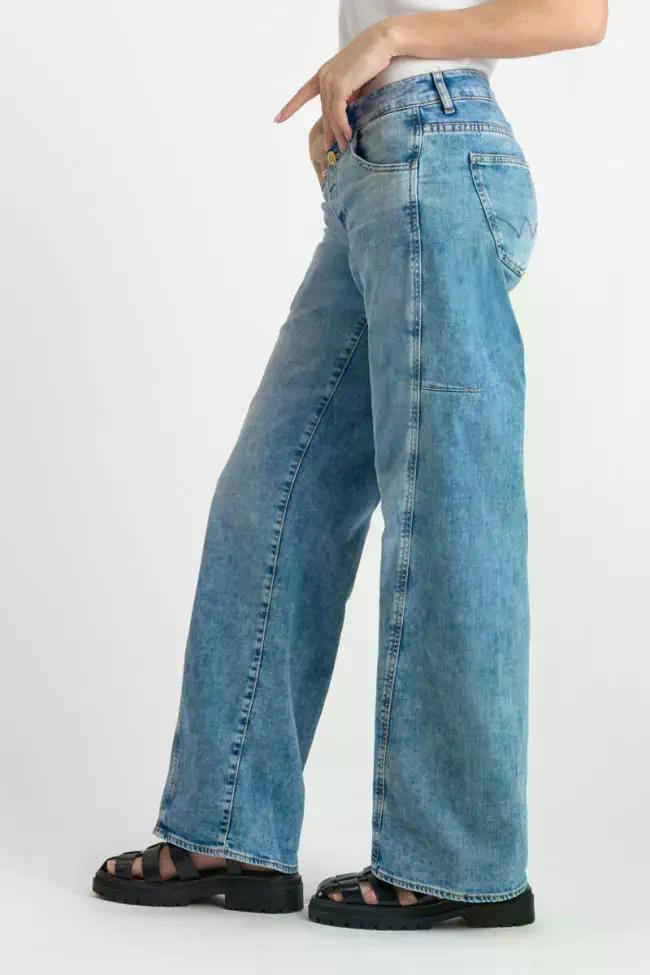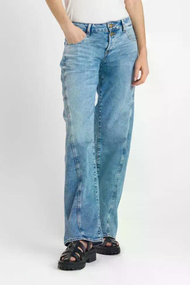 Wide-Leg-Jeans in einem schicken, lässigen Look. weites Bein , von der Hüfte bis zum Knöchel , leicht dehnbar, Standardtaillenhöhe, Beinform ausgestellt, Knopfverschluss, verdrehter Saum, Candianidenim, blue