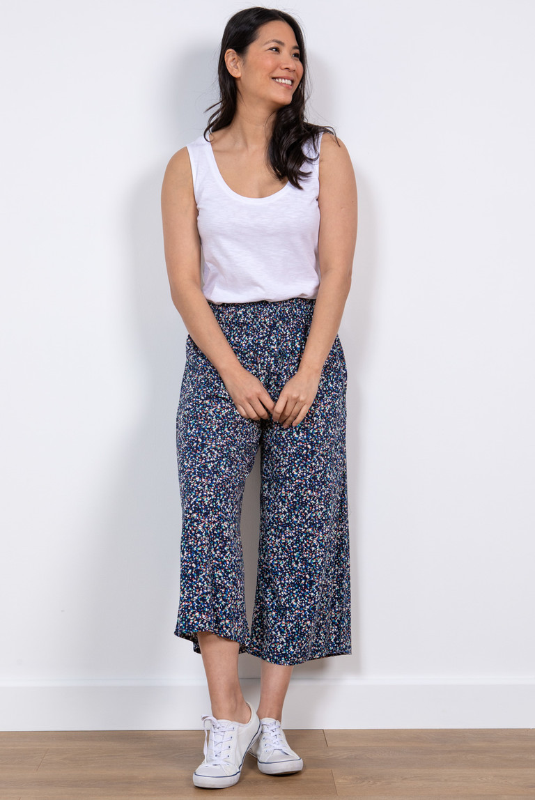 Evie-Hosen mit ¾-weites Bein, durchgehender Gummizug in der Taille, seitliche Eingrifftaschen