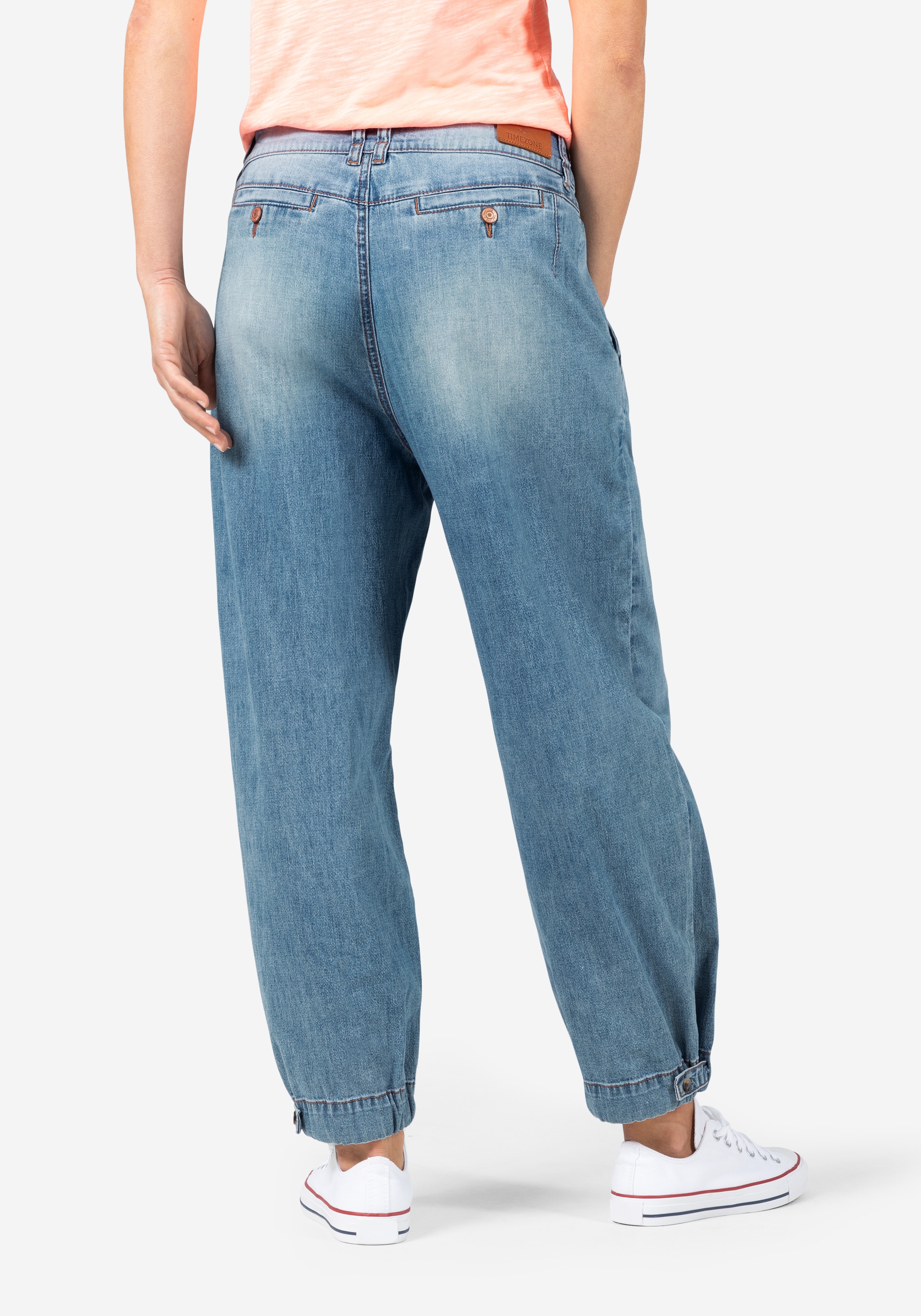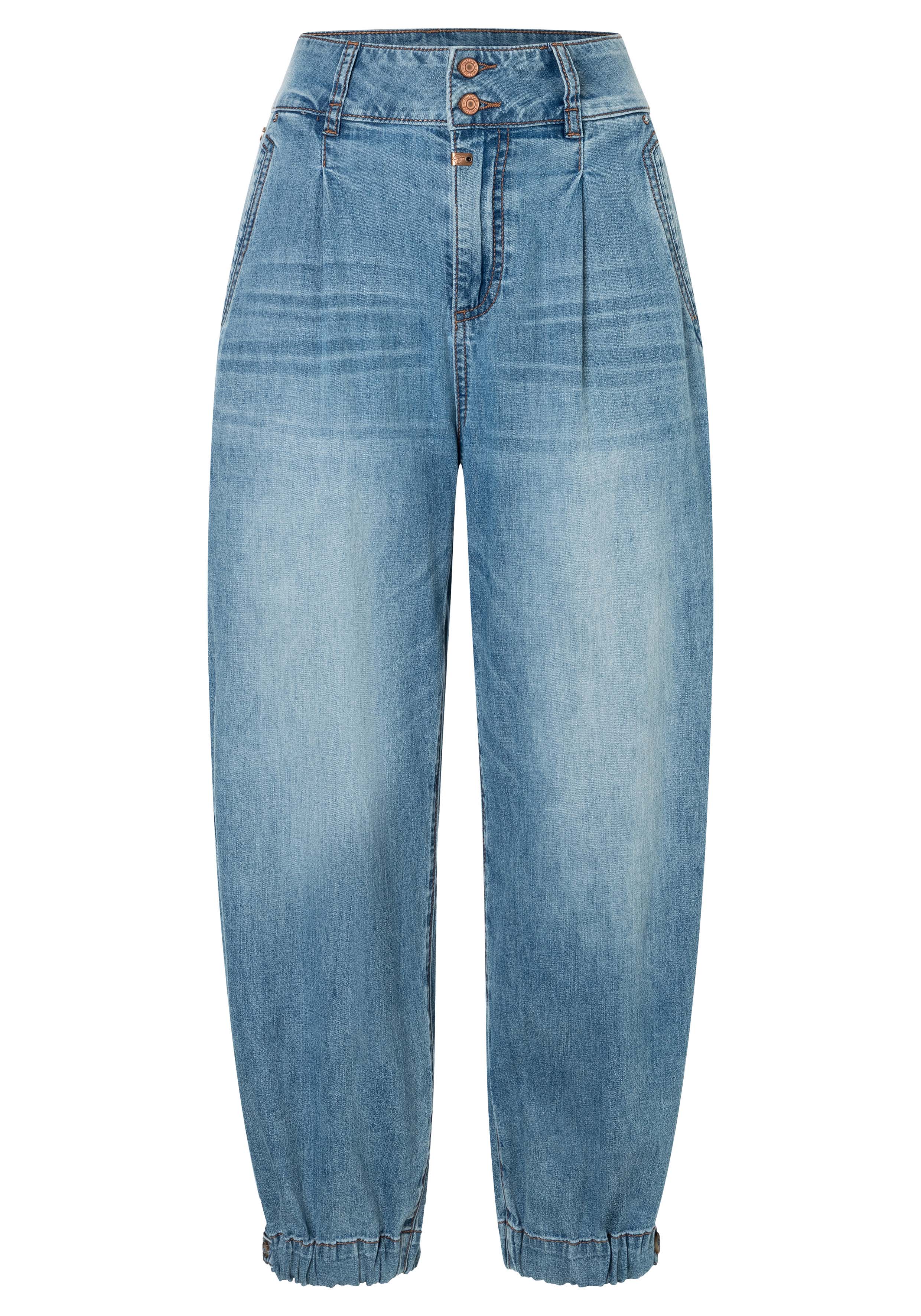 Weite Bundfaltenjeans, Loose Fit, Medium Waist, verkürzte Beinlänge, cropped, breiter Bund mit schmalen Gürtelschlaufen, tiefe Bundfalten, Eingrifftaschen