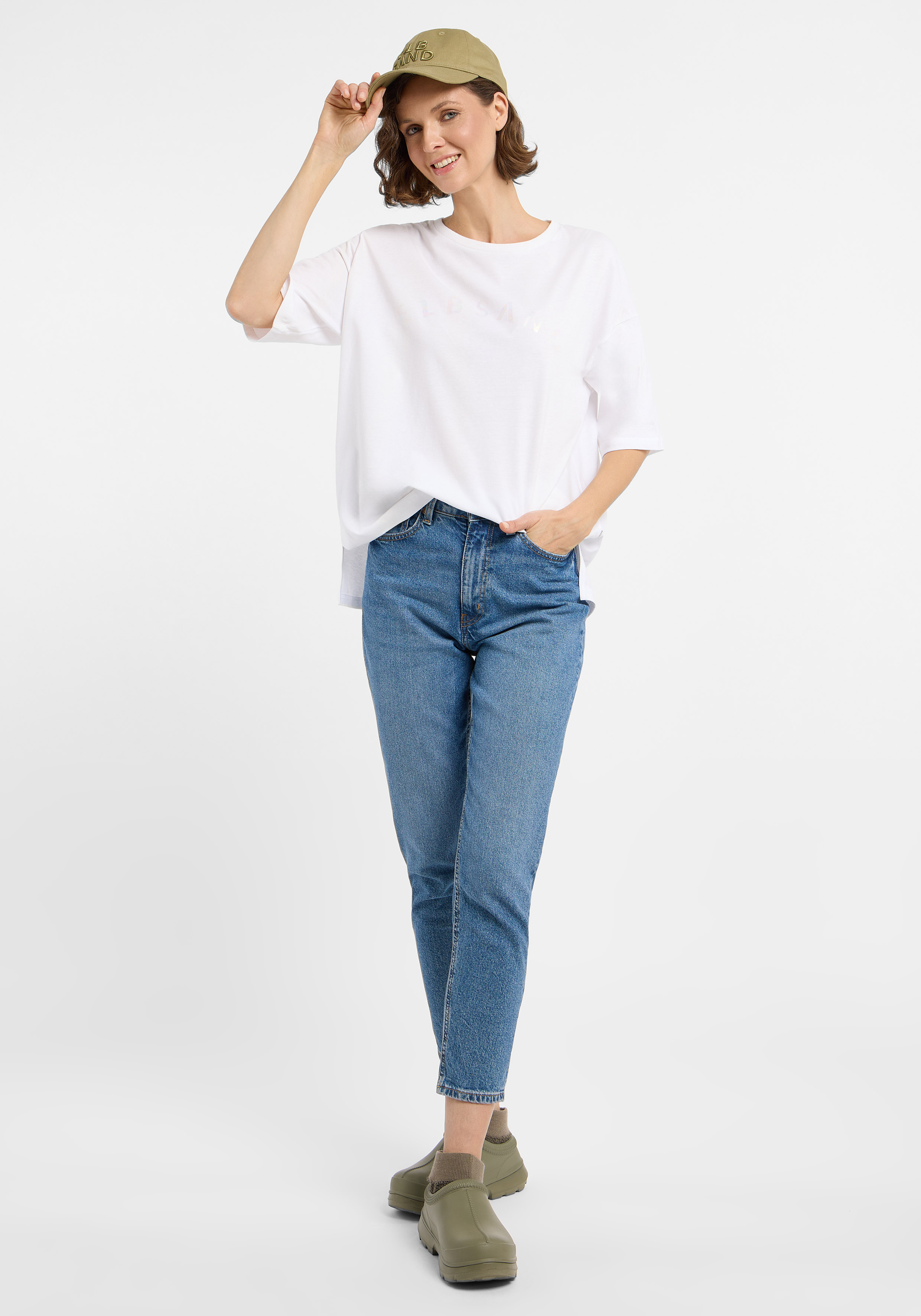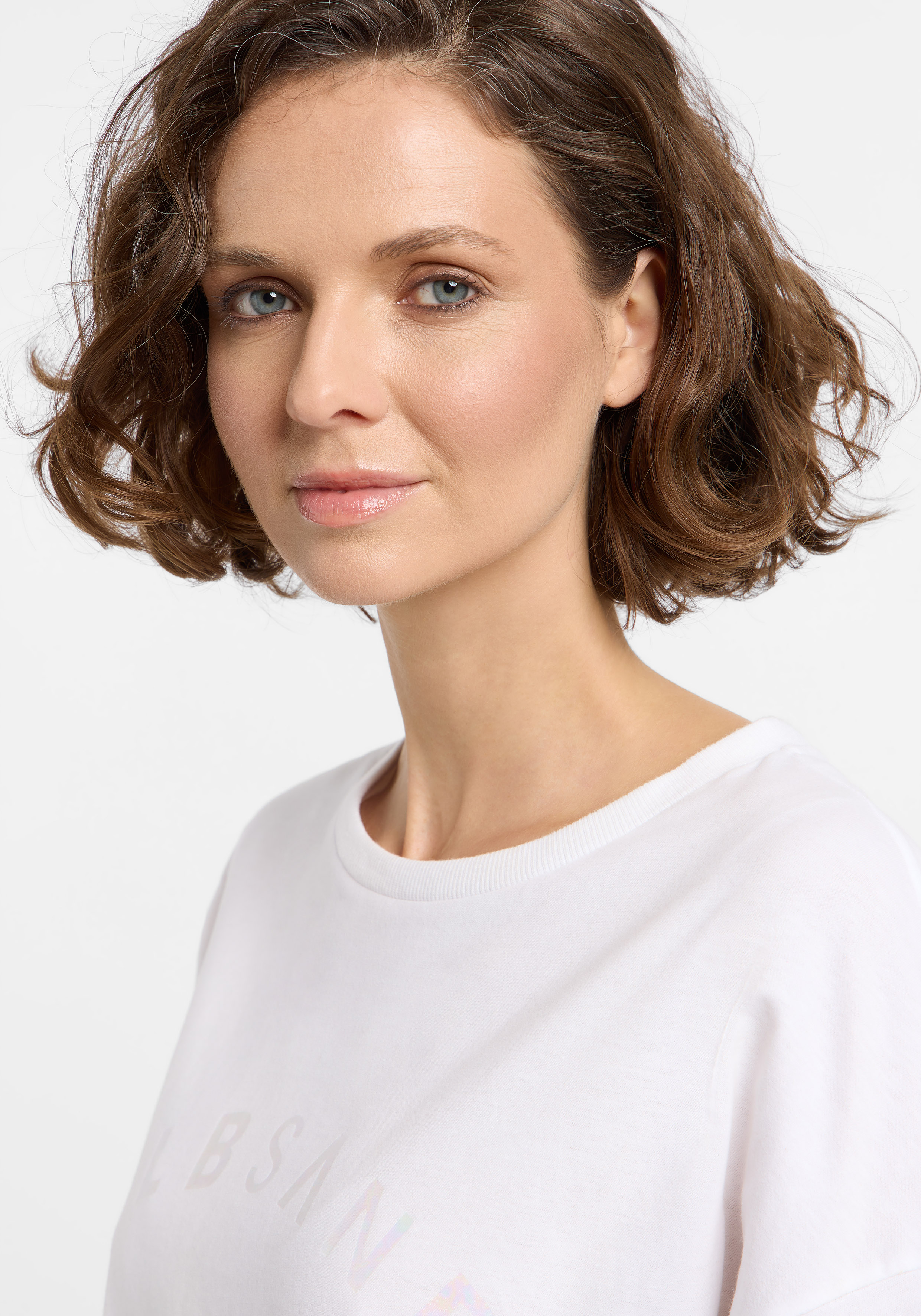 Weit geschnittenes T-Shirt mit feinem, geripptem Rundhalsaussch, Oversize T-shirt mit einem Hauch Glamour