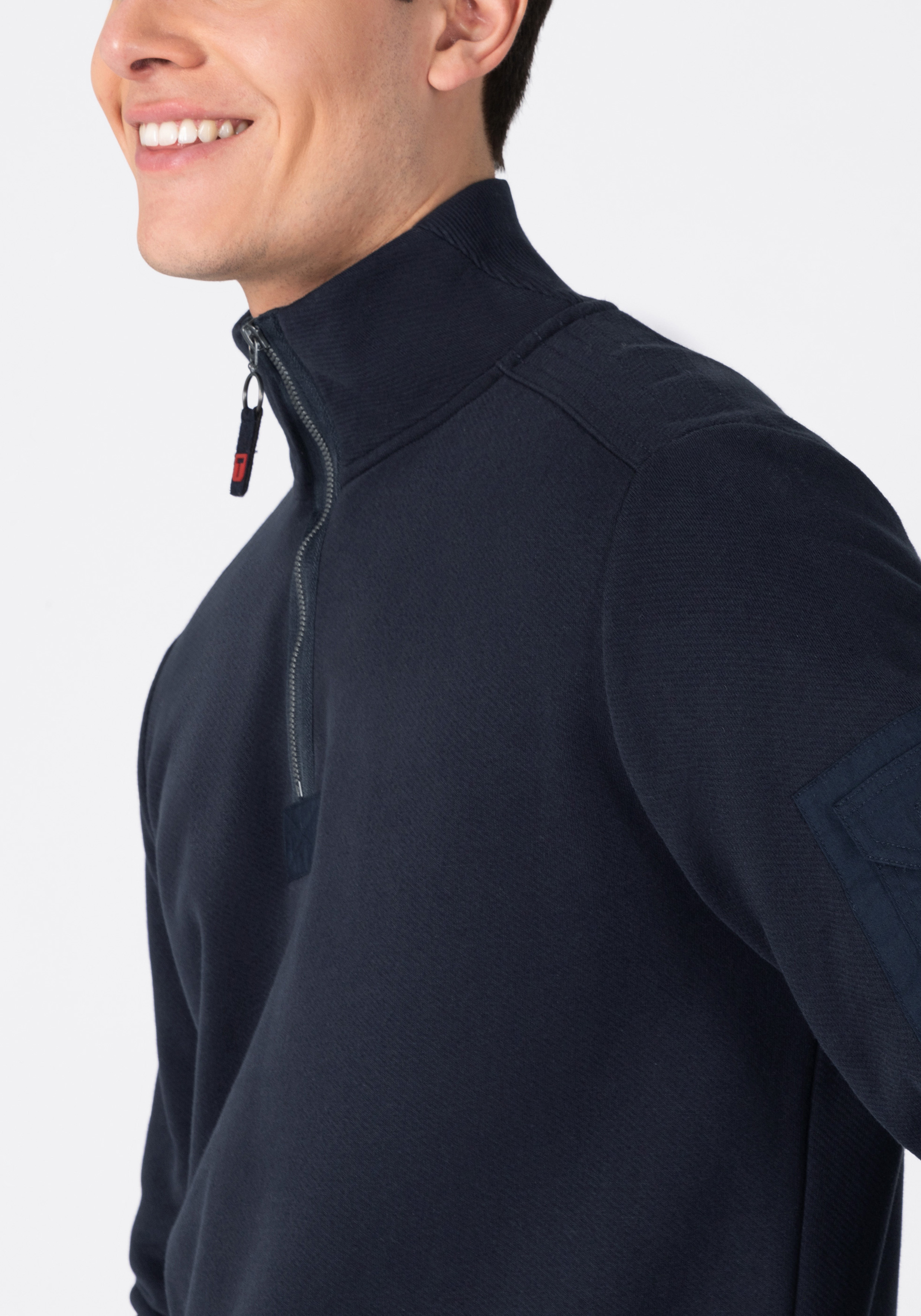 Half-Zip-Sweatshirt *Regular Fit *Kragen auf der Rückseite aus Ripp-Jersey *Klassische Bündchen-Verarbeitung an Ärmel und Saum *Kerniger, halber Front-Zipper *Markante Stepplinien an der Schulter *Ärmeltasche mit Klappe aus Baumwolle-Twill *Supersofter, geschmirgelter Baumwolle-Mix *Innenseite mit kerniger Frottee-Struktur *Logo-Stickerei auf der Tasche *Web-Logo am Saum