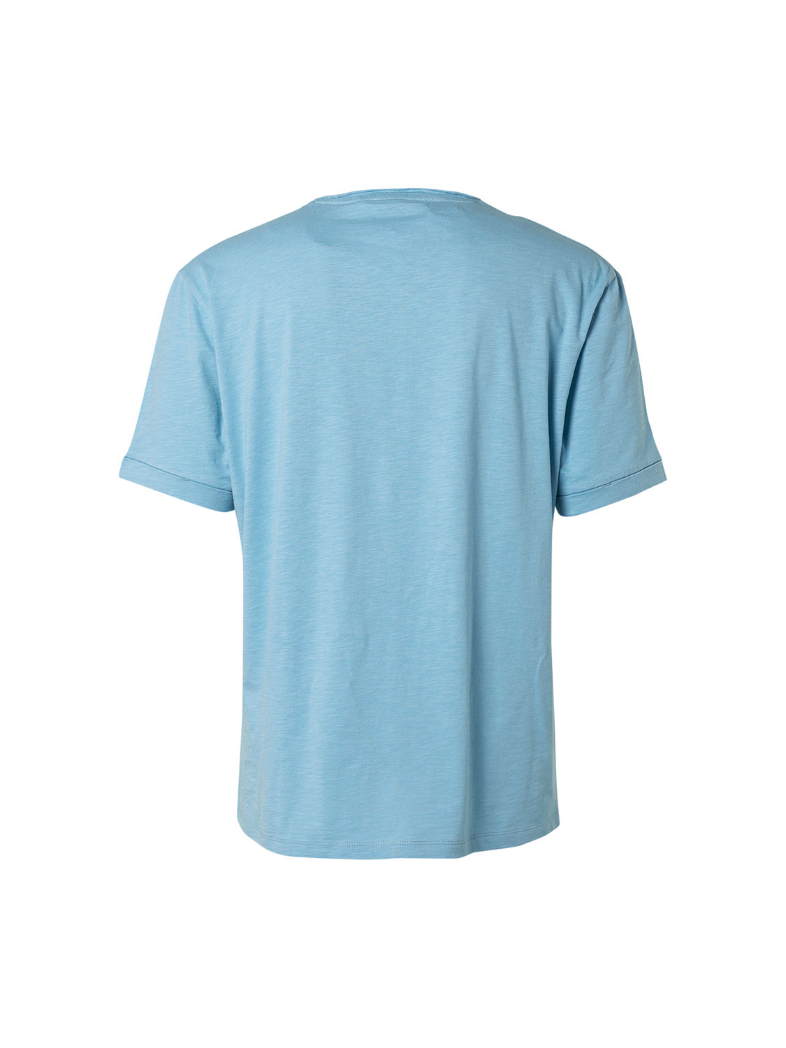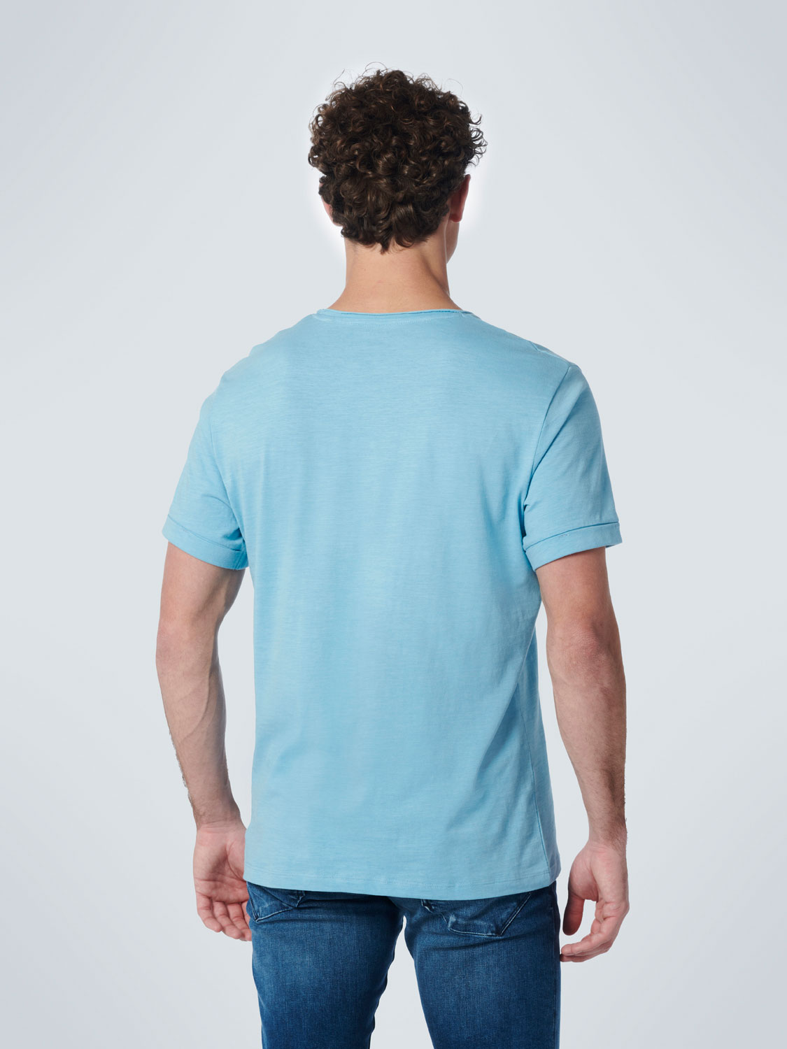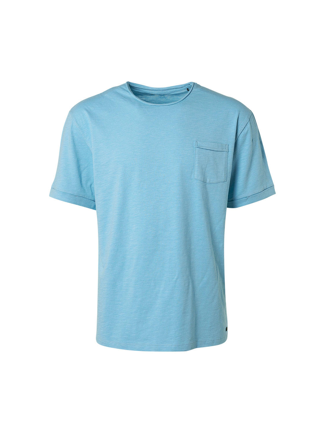 Ein Basic T-Shirt von No Excess. Dieses T-Shirt hat einen stückgefärbten Wascheffekt, der einen verwaschenen Look erzeugt. Als nettes Detail ist auf der Brust eine kleine Tasche angebracht. Dieses No-Excess-Musthave kommt in normaler Passform und mit einem Logobadge auf dem linken Ärmel.