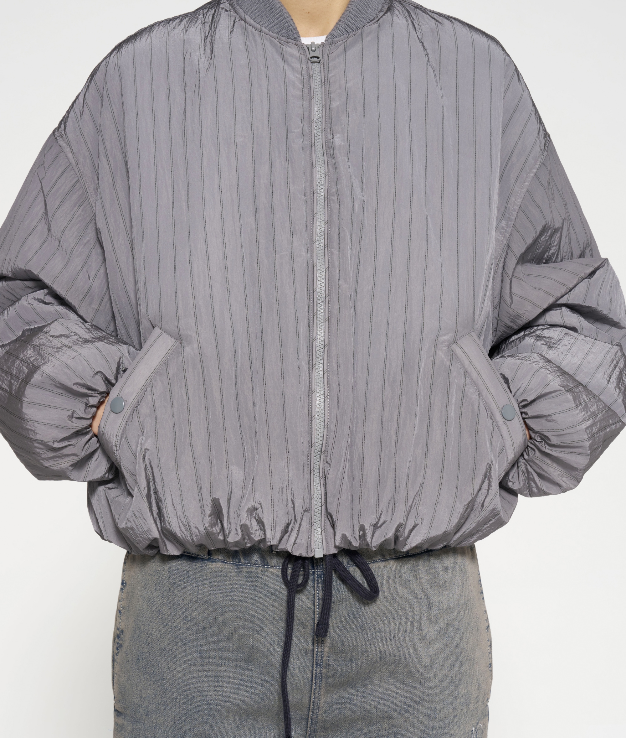 Wattierte Bomberjacke mit Nadelstreifen in Relaxed fit, wasserfestes Nylon, warme Wattierung aus recyceltem Polyester, Eingrifftaschen, rundem Rippstrickausschnitt, Reißverschluss, elastischem Saum und Ärmelabschluss