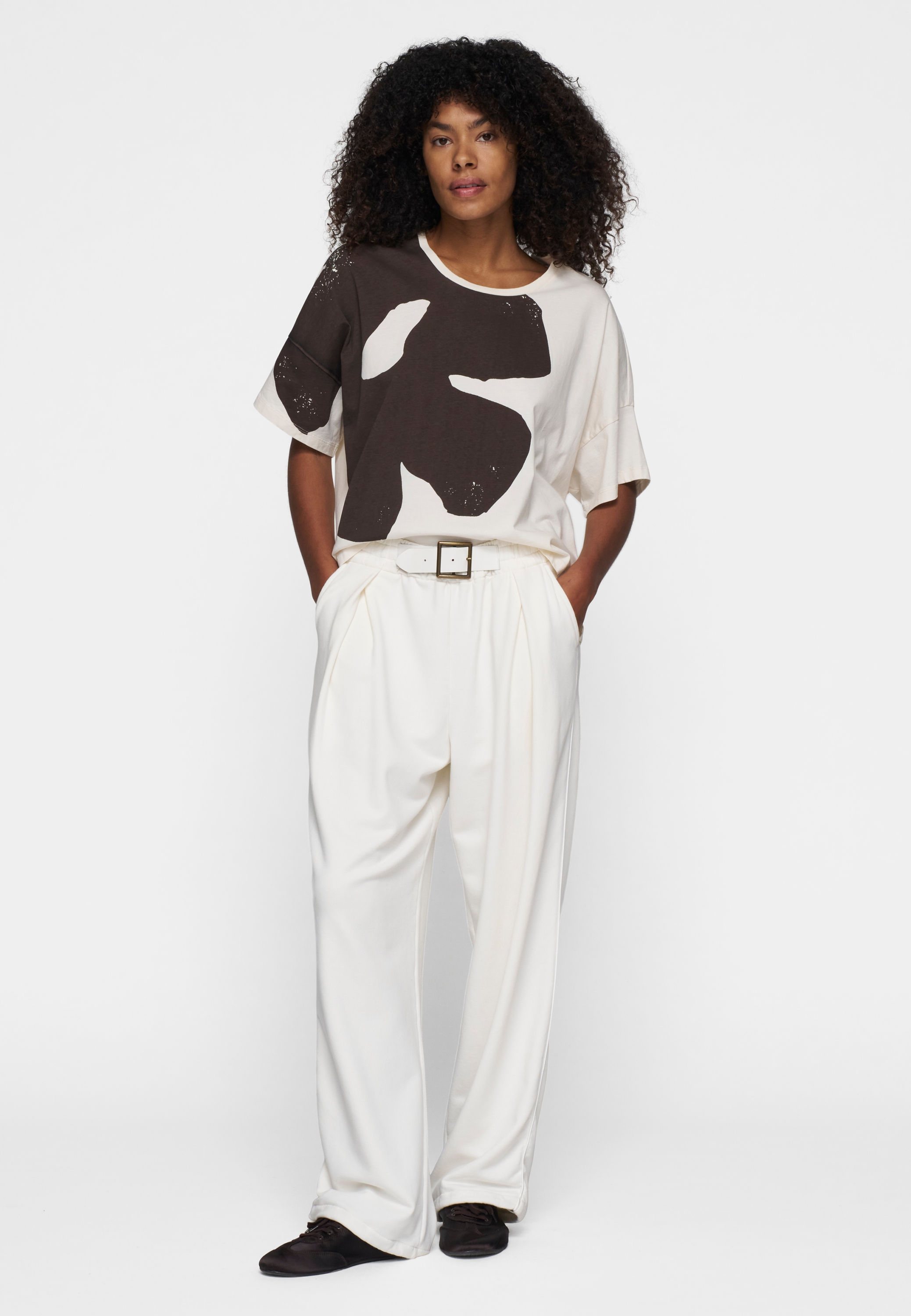 Relaxed Fit T-Shirt, Blumenprint vorne, Seitenschlitzen, gerader Saum, der hinten länger ist als vorne, „10“-Monogrammstickerei auf dem Rücken, Rundhalsausschnitt