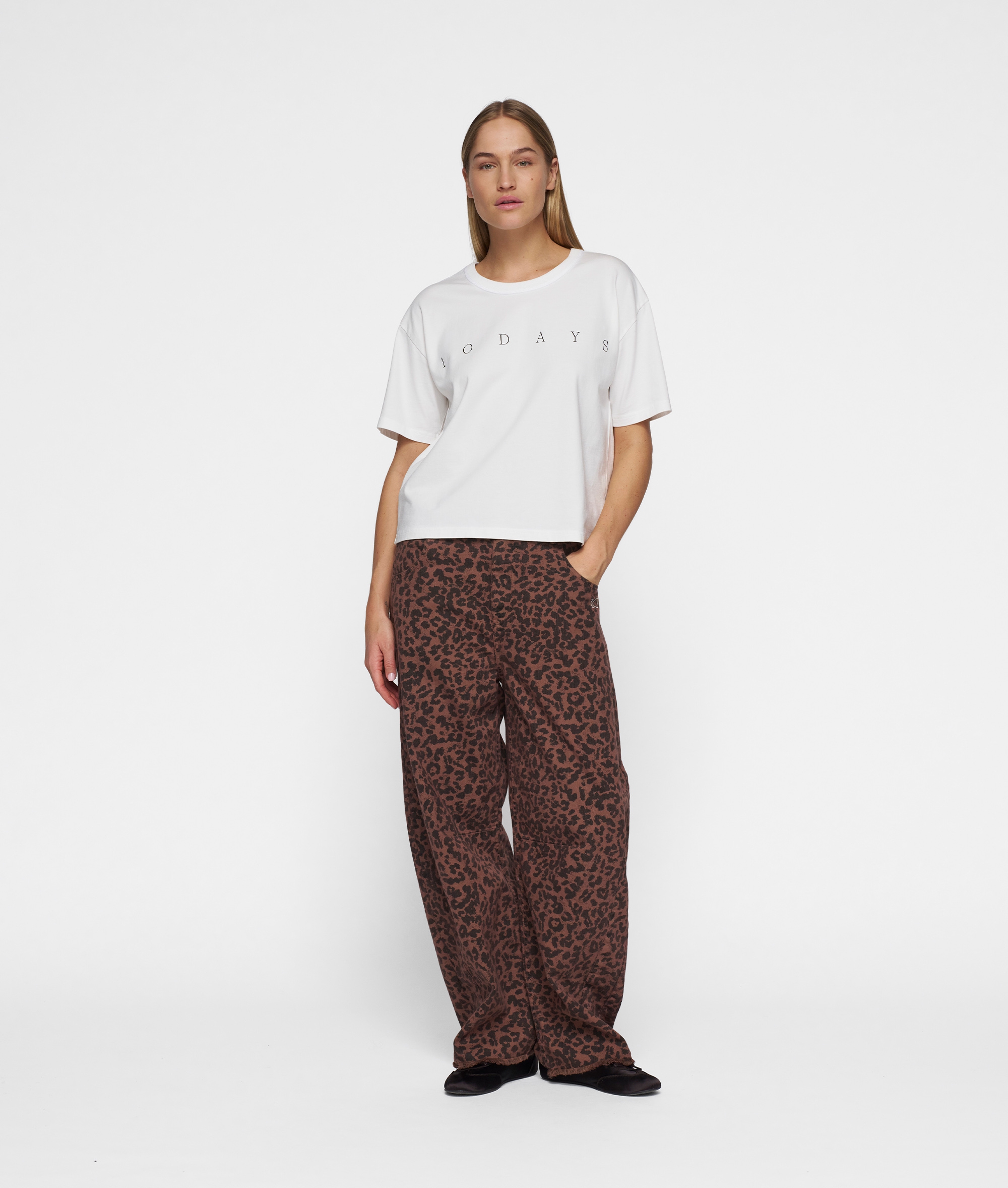 Regular Fit T-Shirt mit kurzen Ärmeln und Logo,t Rippstrickbündchen am Halsausschnitt, „10DAYS“-Logo auf der Vorderseite und „Mini Stripes“-Stickerei auf der Rückseite, Color ecru